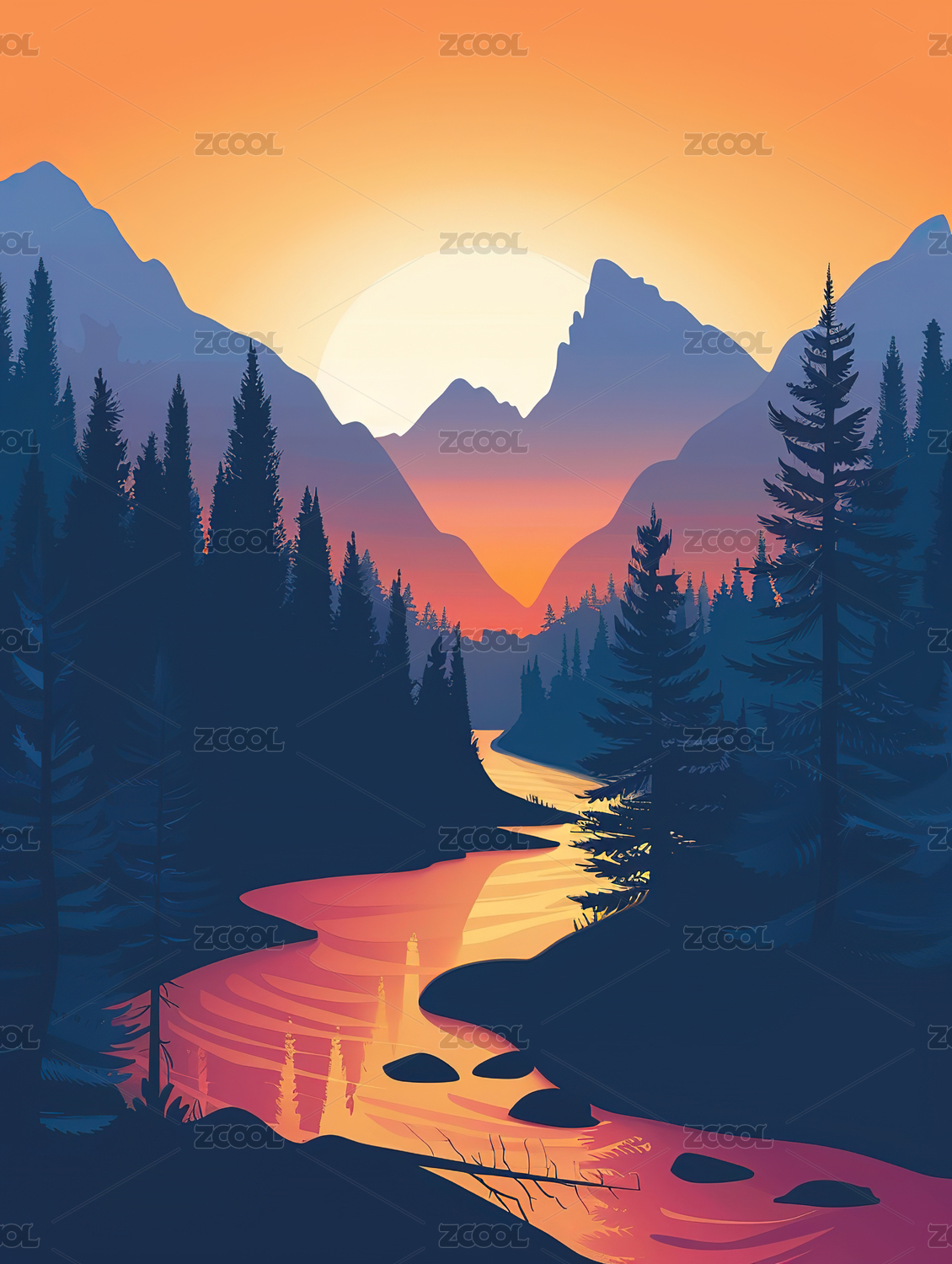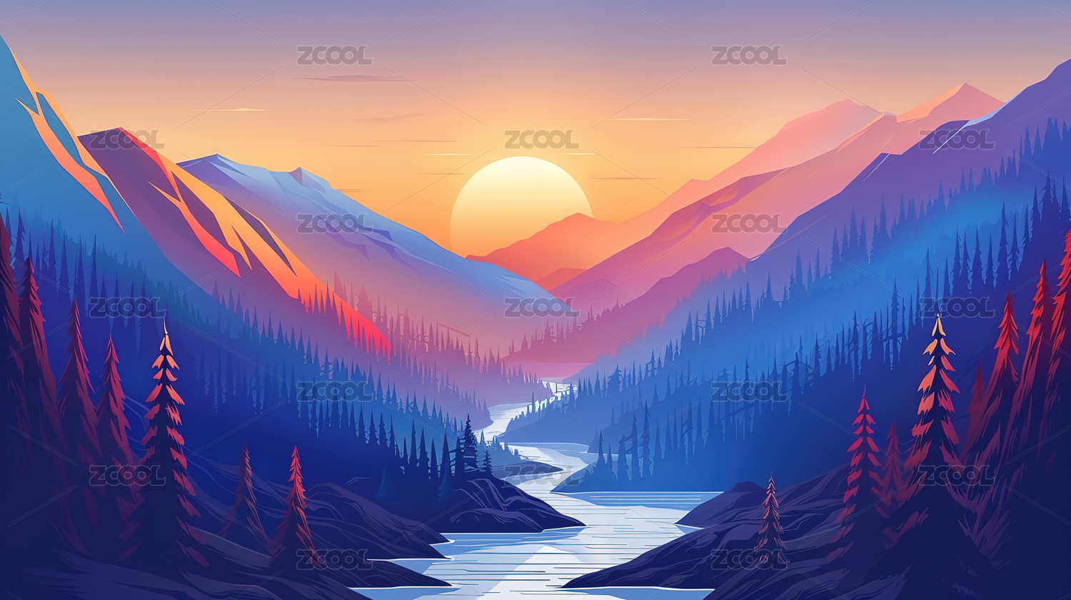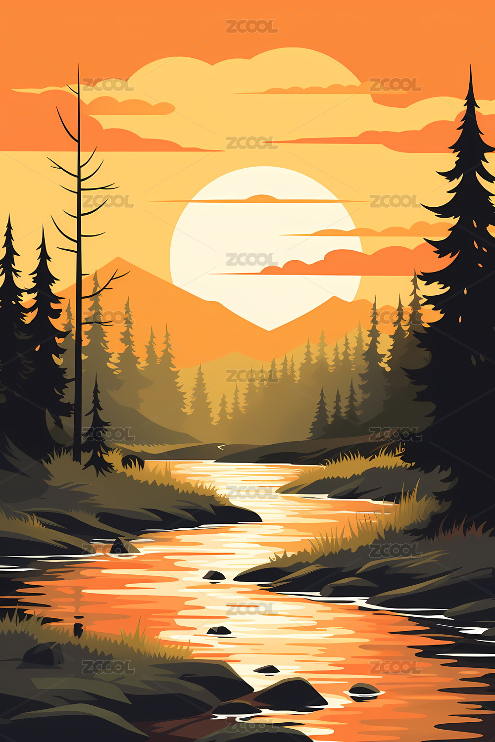 风景,AI数字艺术,自然,树,户外,天空,季节,云,高山,地形