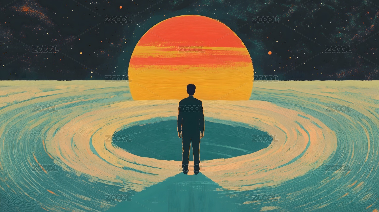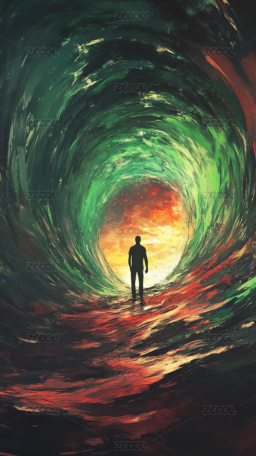 孤独身影与旋涡天空