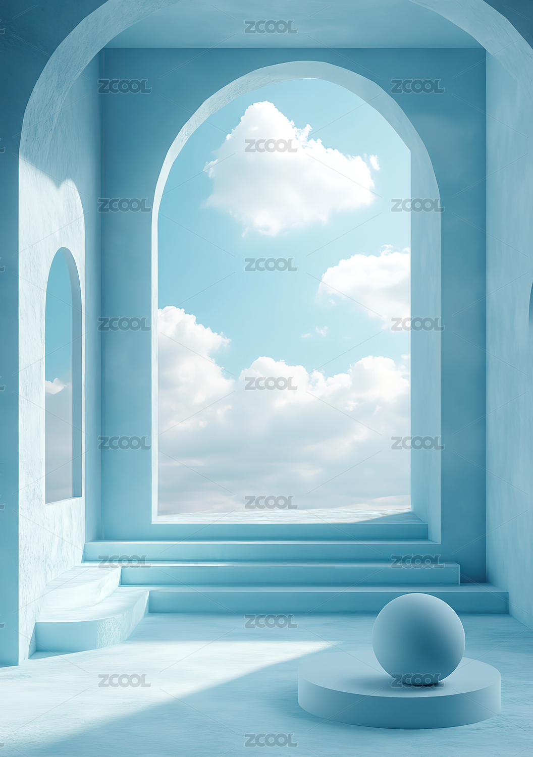 简约蓝色天空拱门空间场景电商产品展台背景