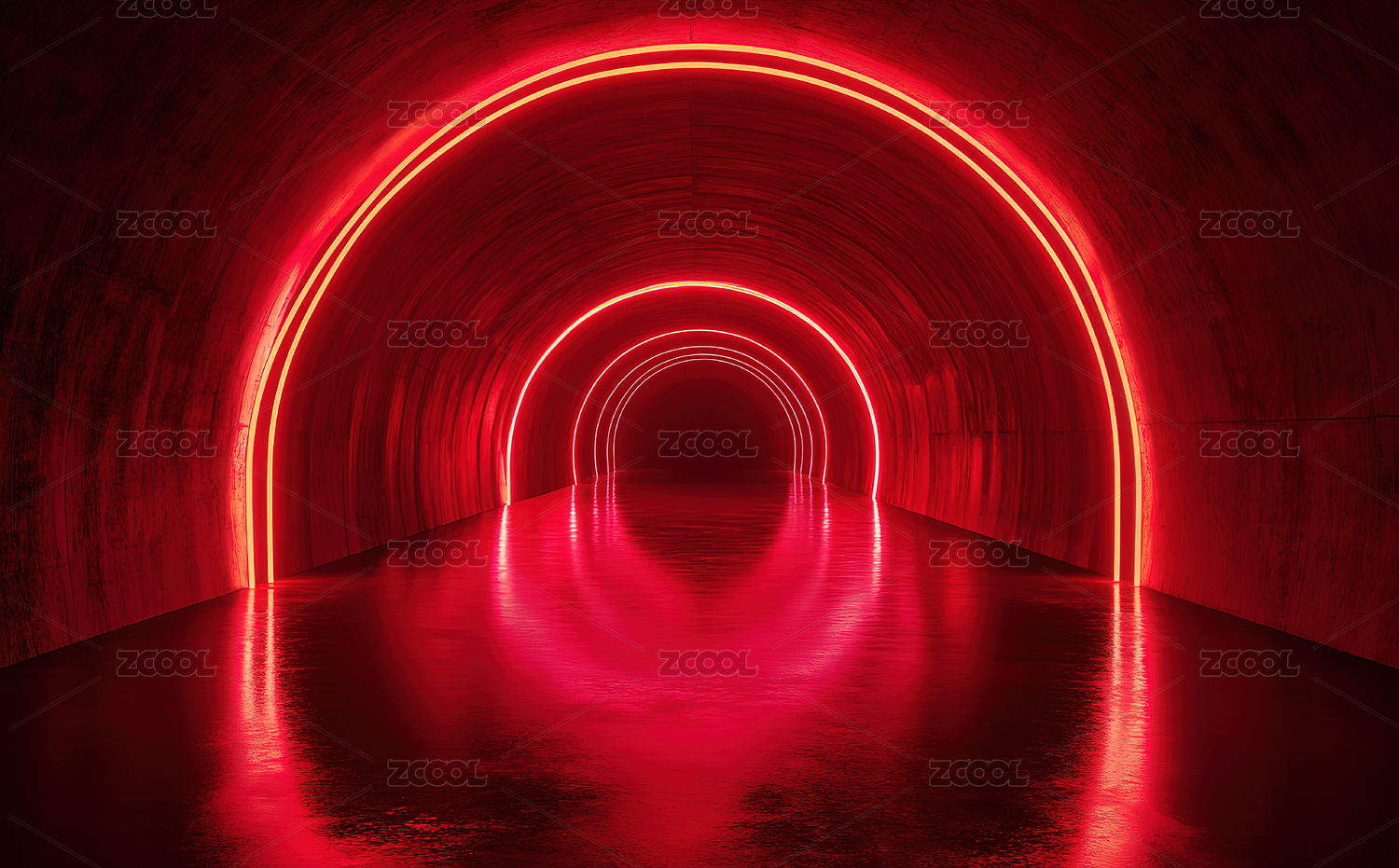 红色未来感的科幻隧道走廊