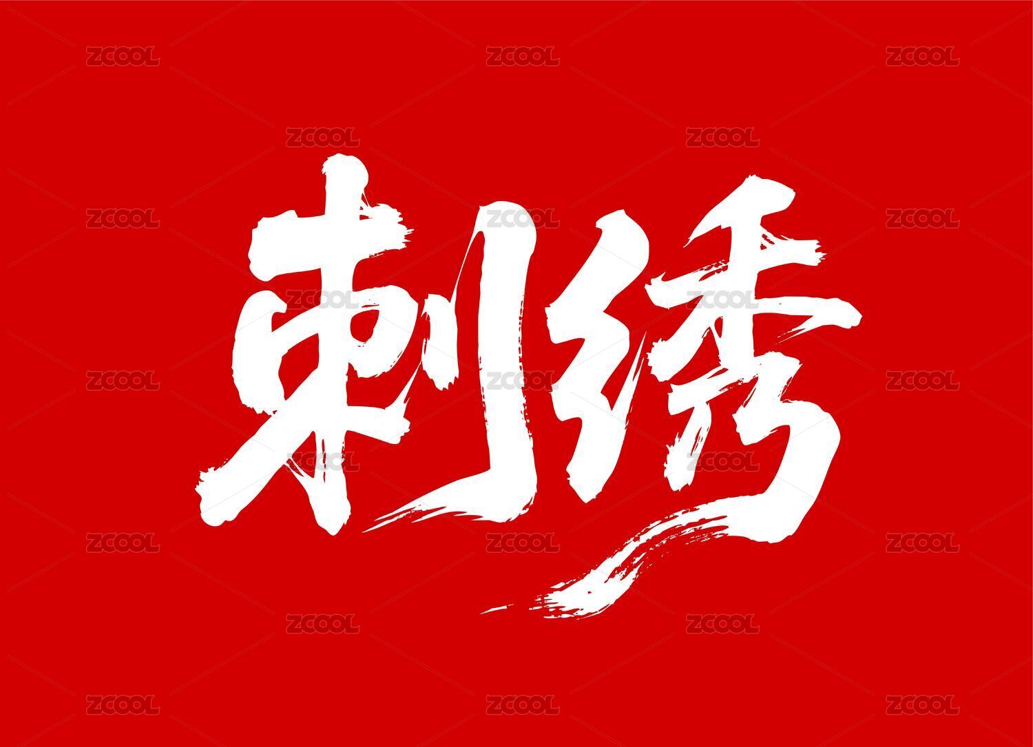 刺绣矢量书法手写毛笔字