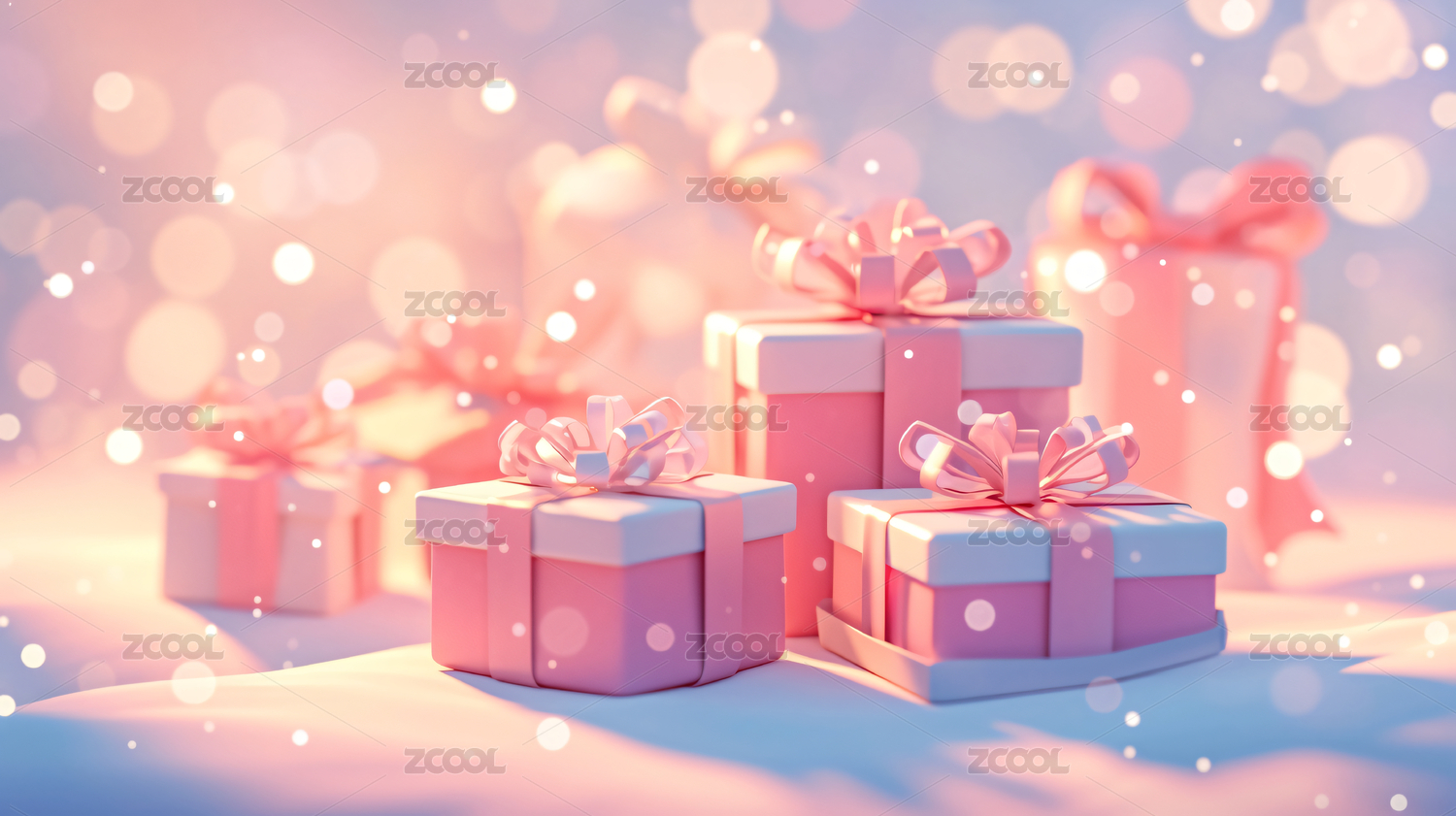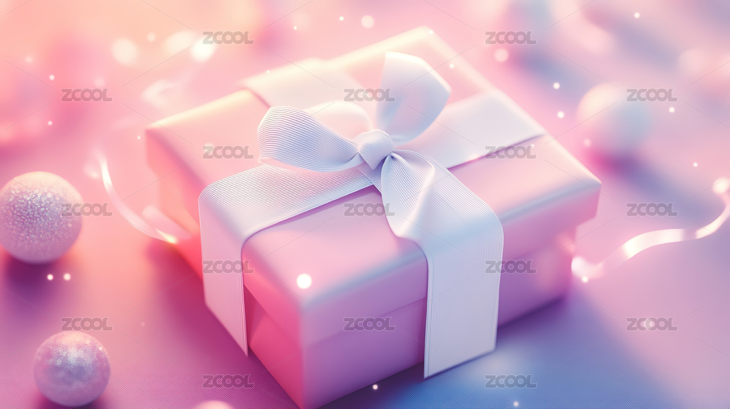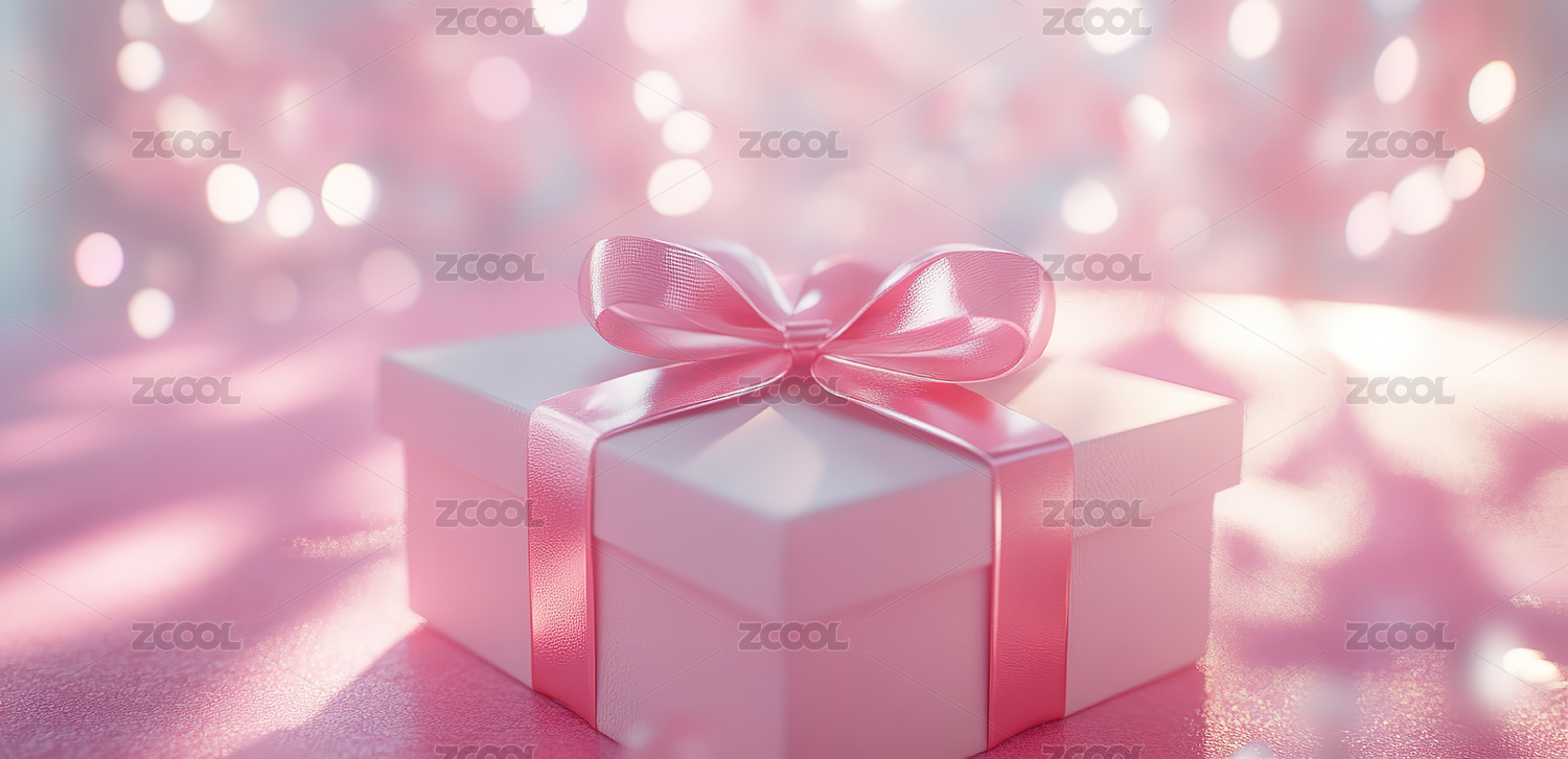 粉色礼品盒配梦幻光斑背景
