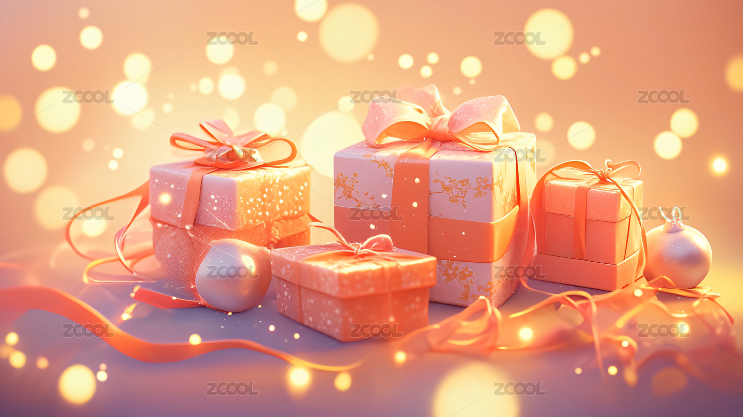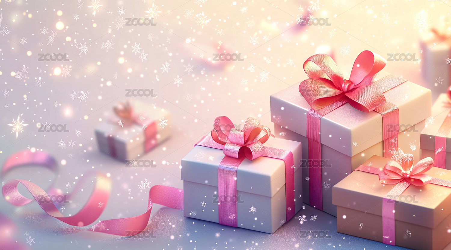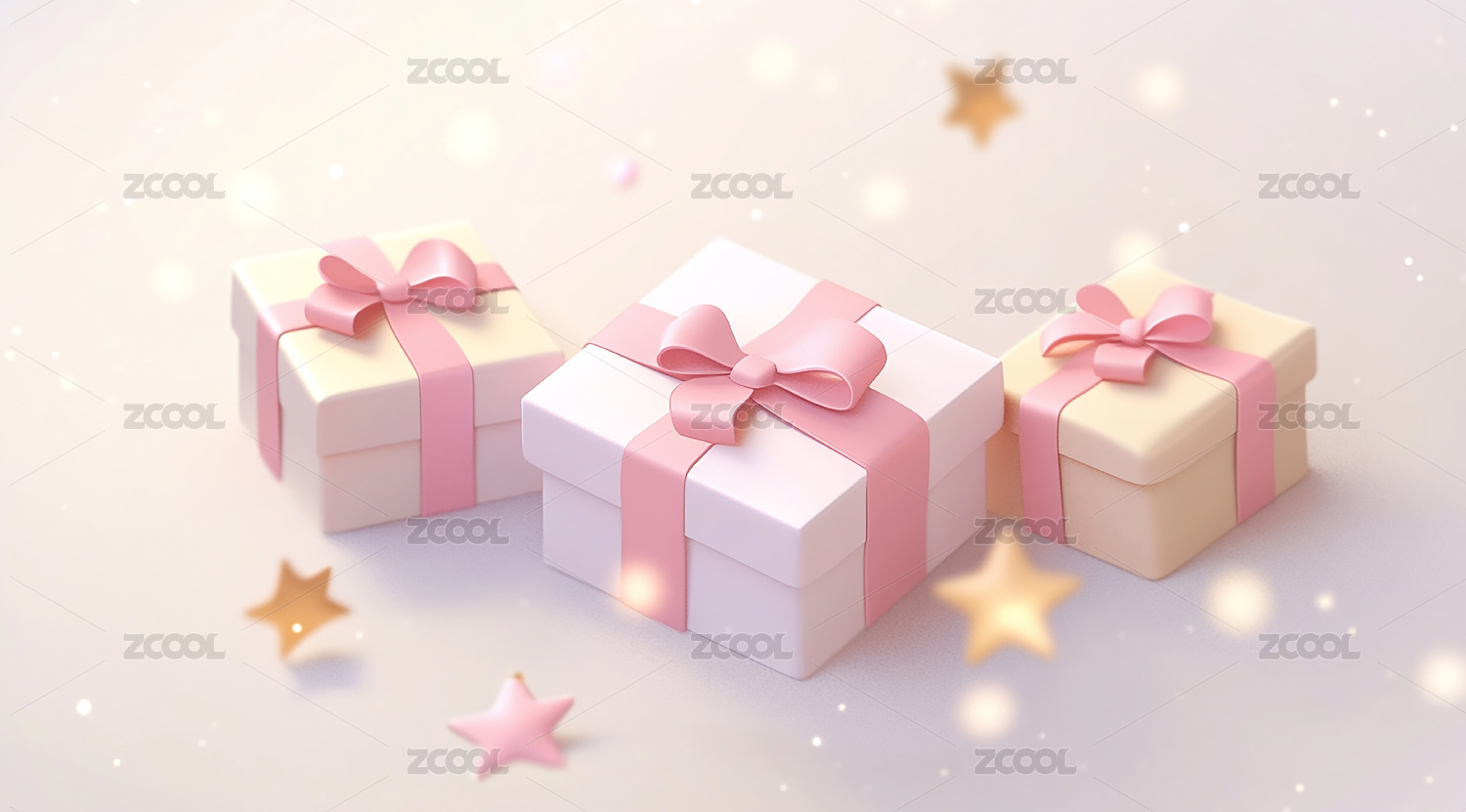 粉色礼品盒配梦幻光斑背景