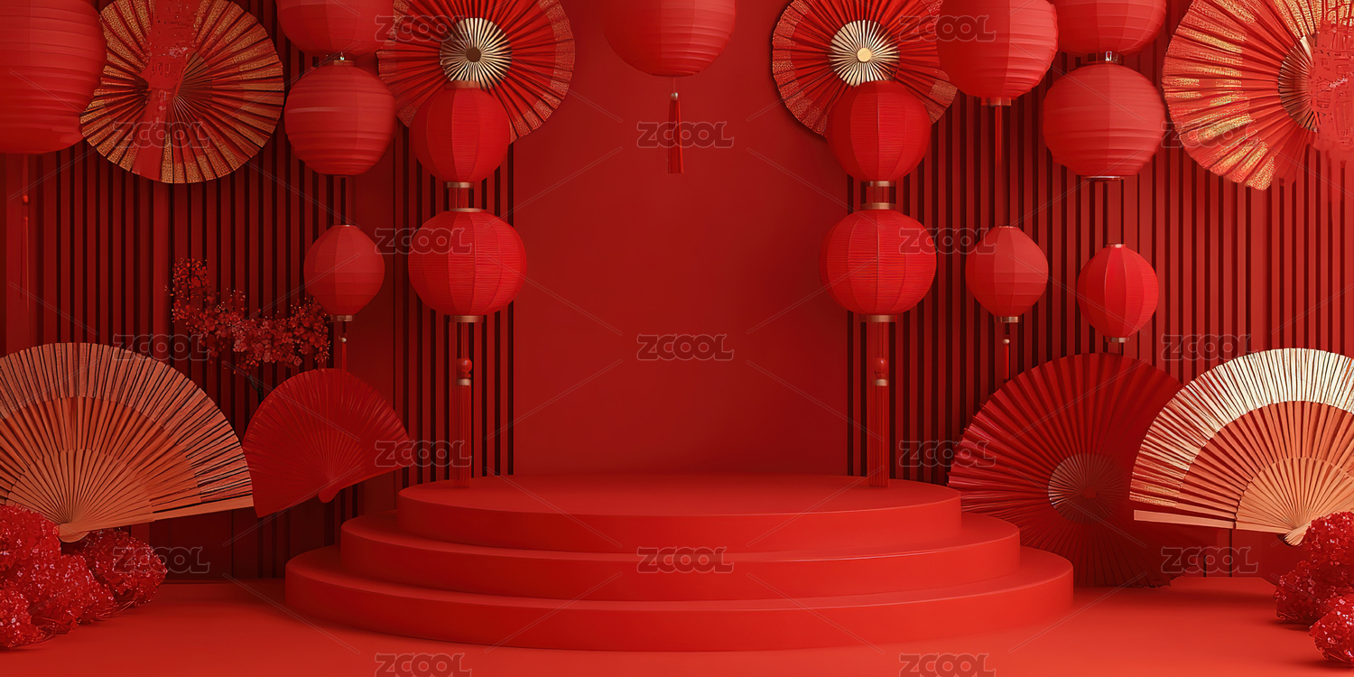红色中式节日舞台场景