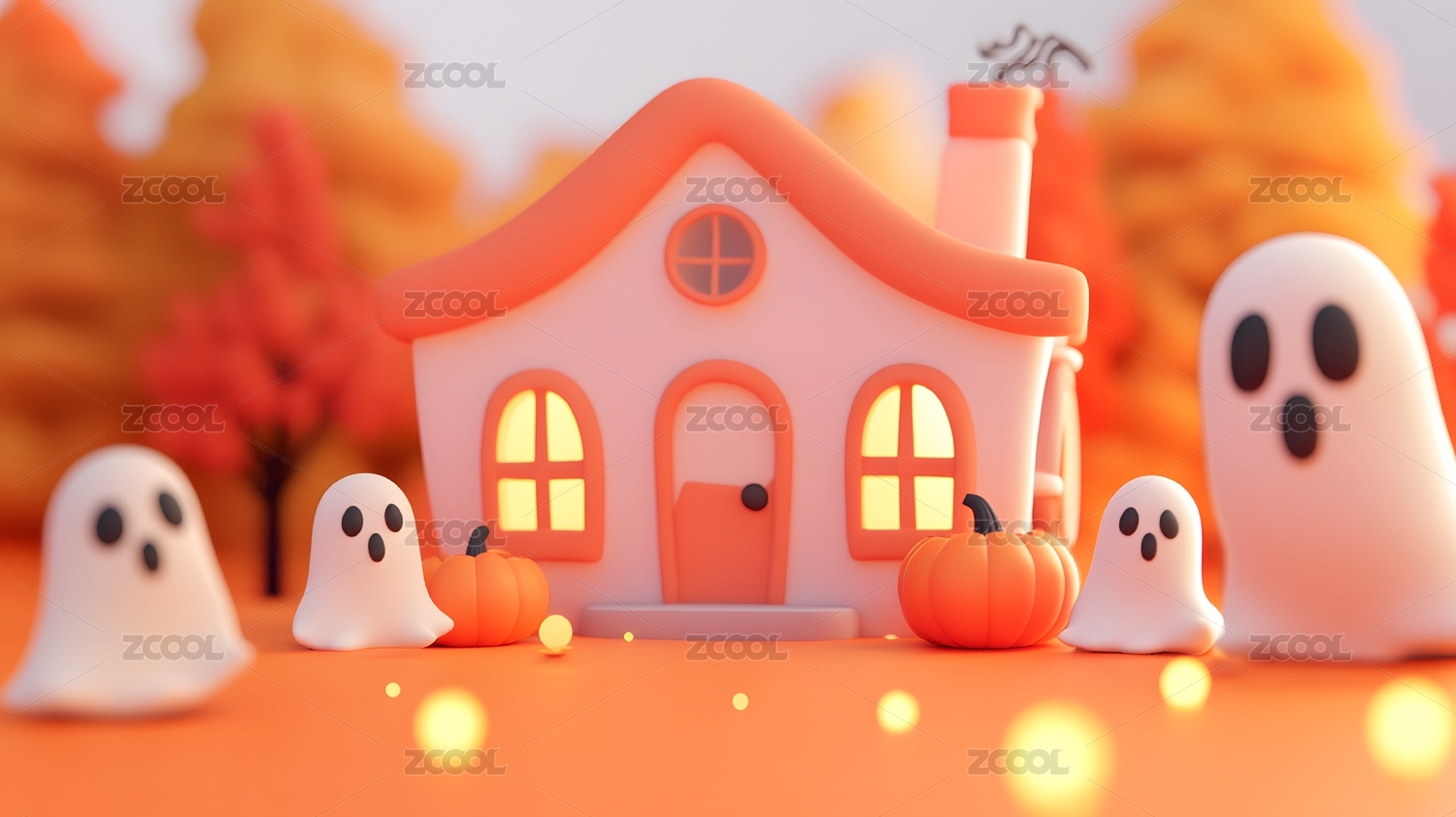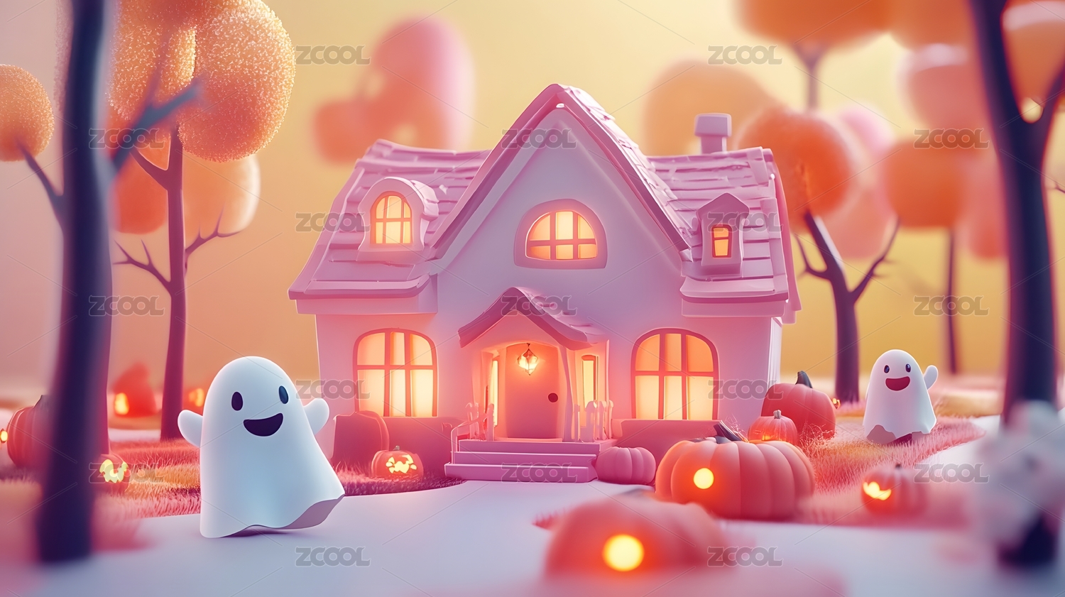 3D万圣节卡通小屋房子插画