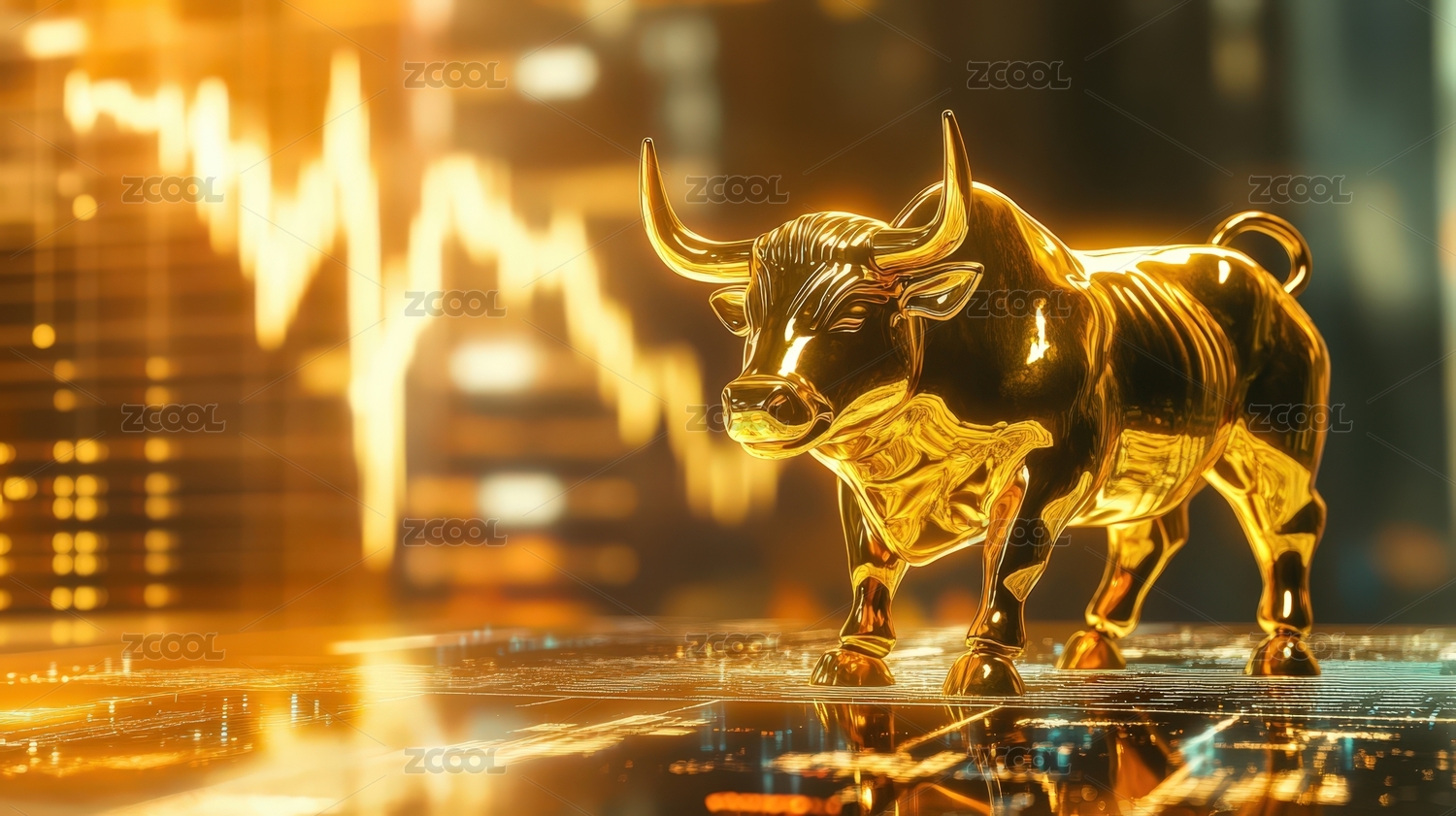 金色公牛立于金融背景上