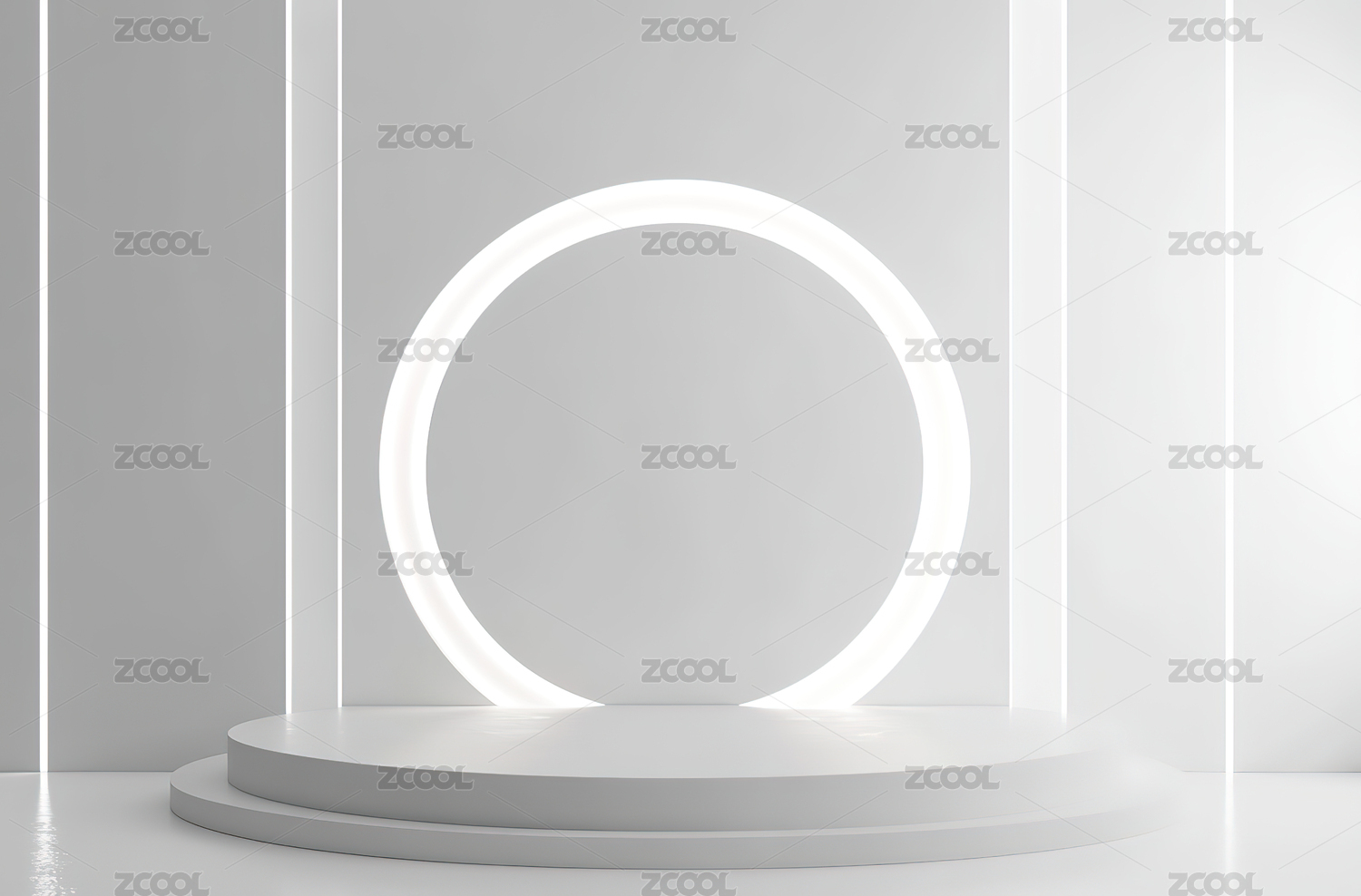 发光圆环置于白色展台