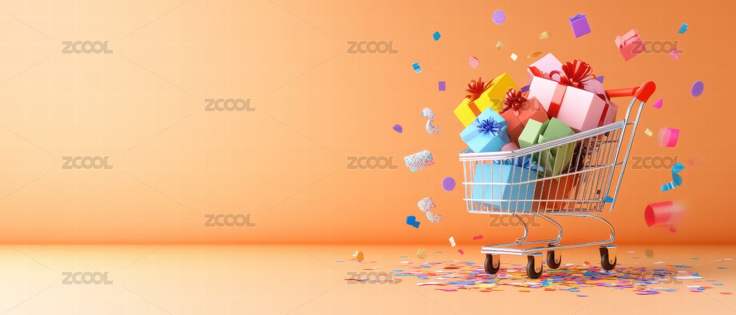 三维,立体,3D,插画,背景,壁纸,创意,礼物,购物车,节日