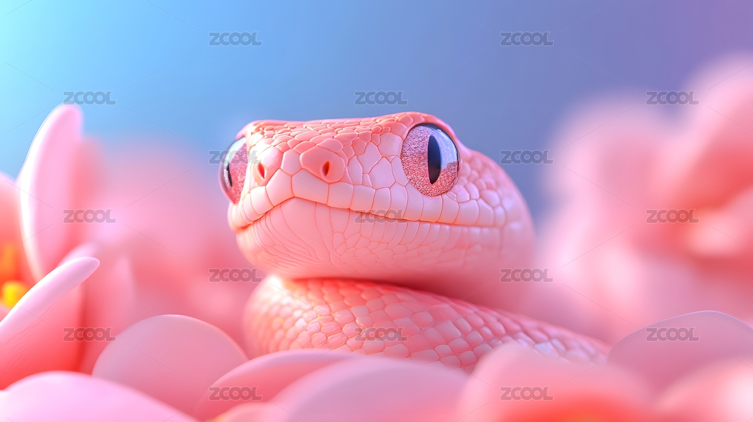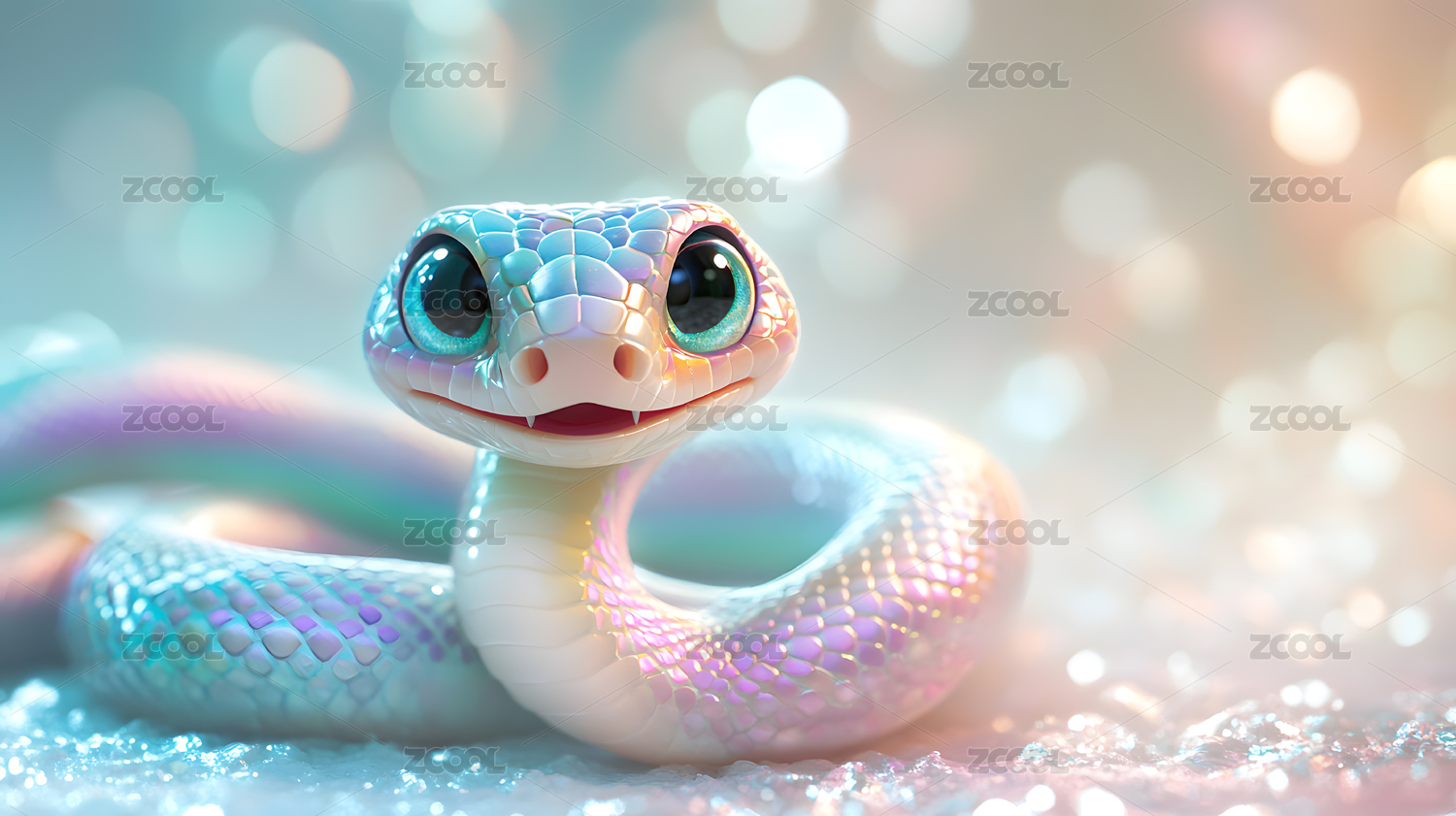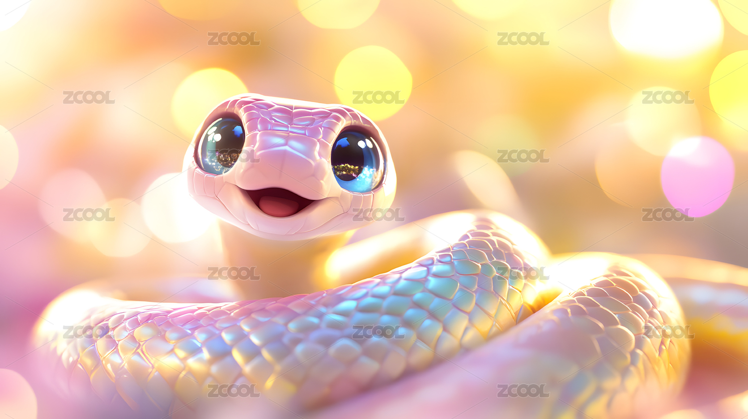 三维,立体,3D,卡通,蛇,可爱,彩色,粉色,蓝色,绿色