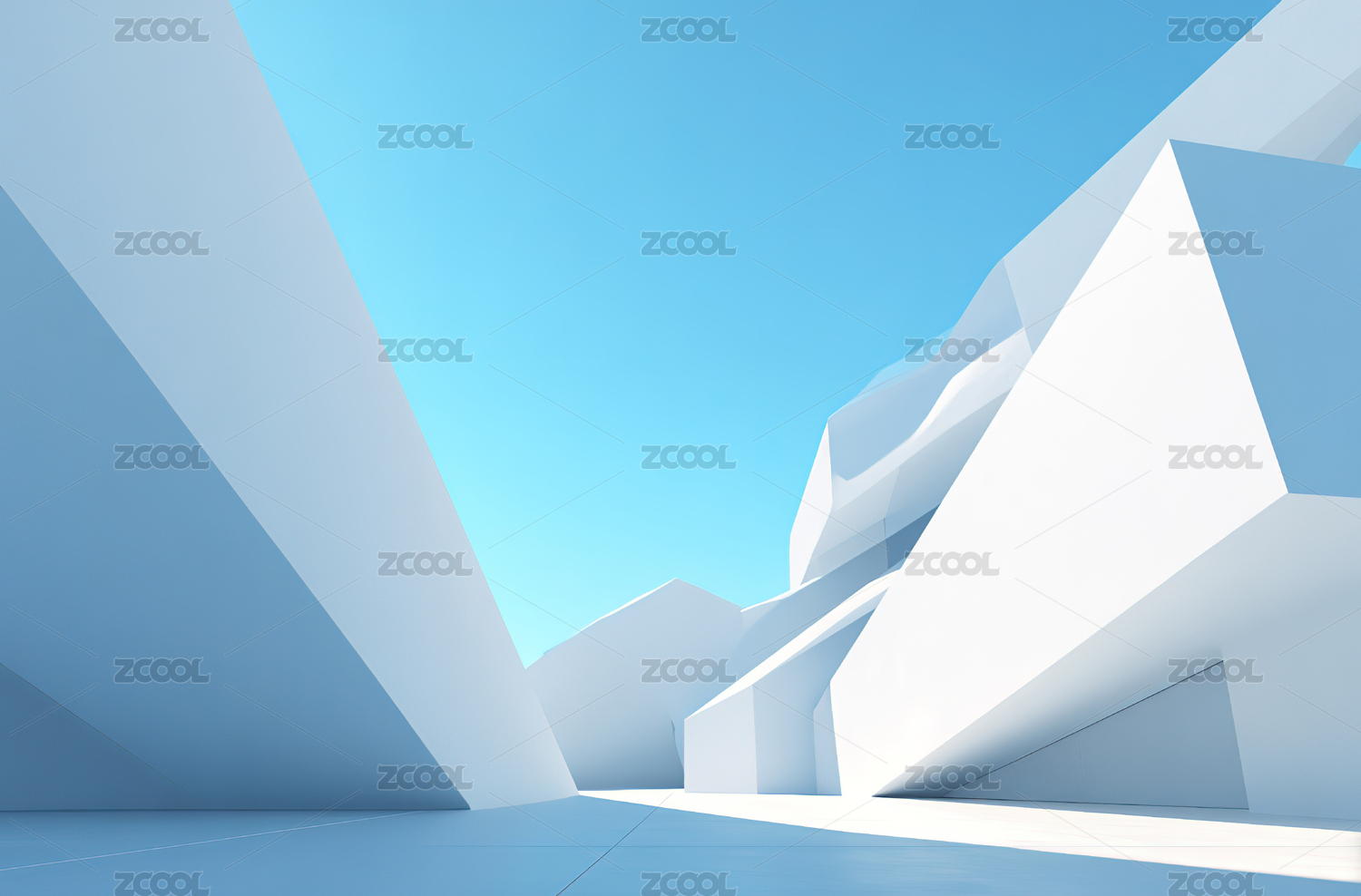白色室外抽象几何建筑场景3D渲染