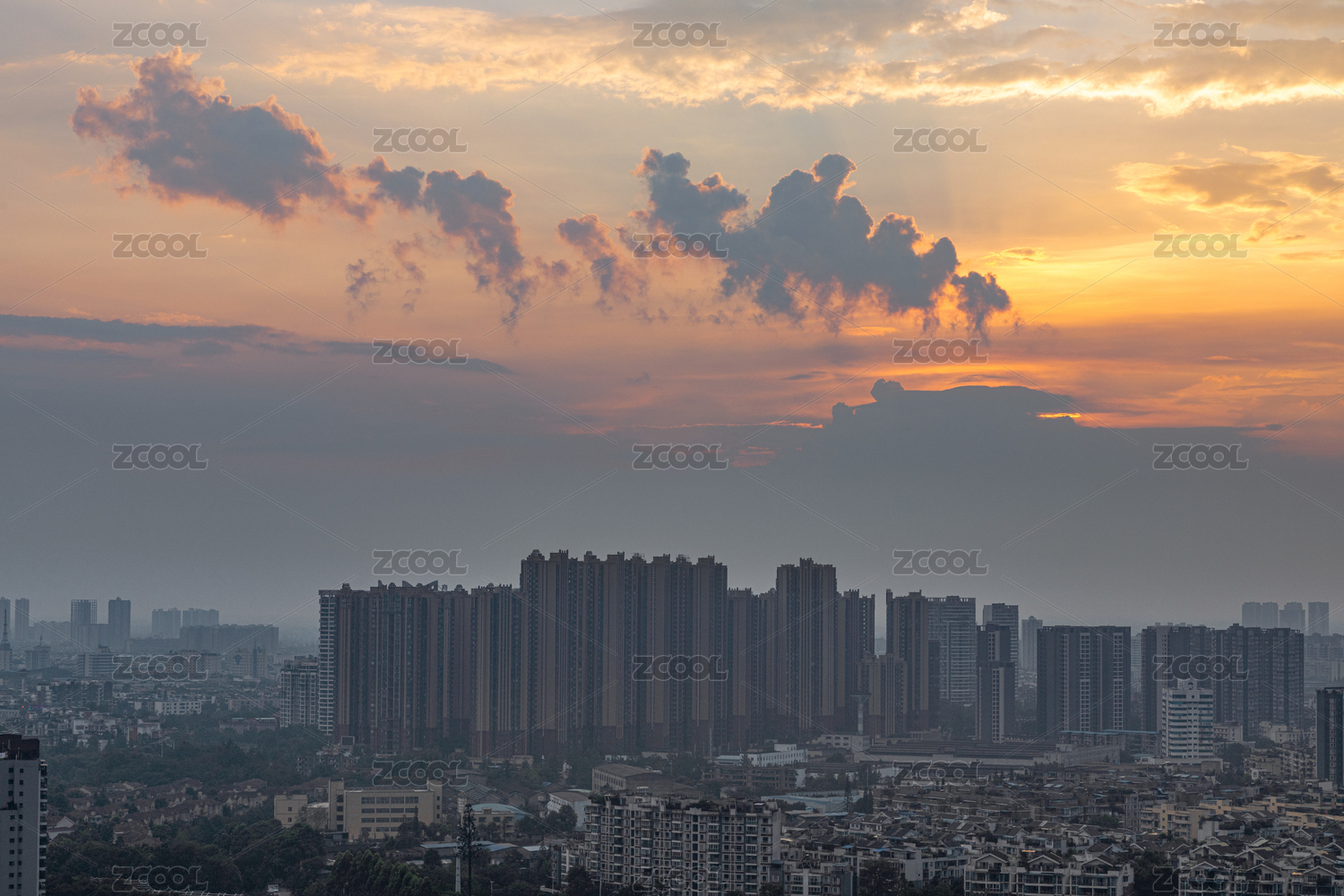 城市上空的落日晚霞