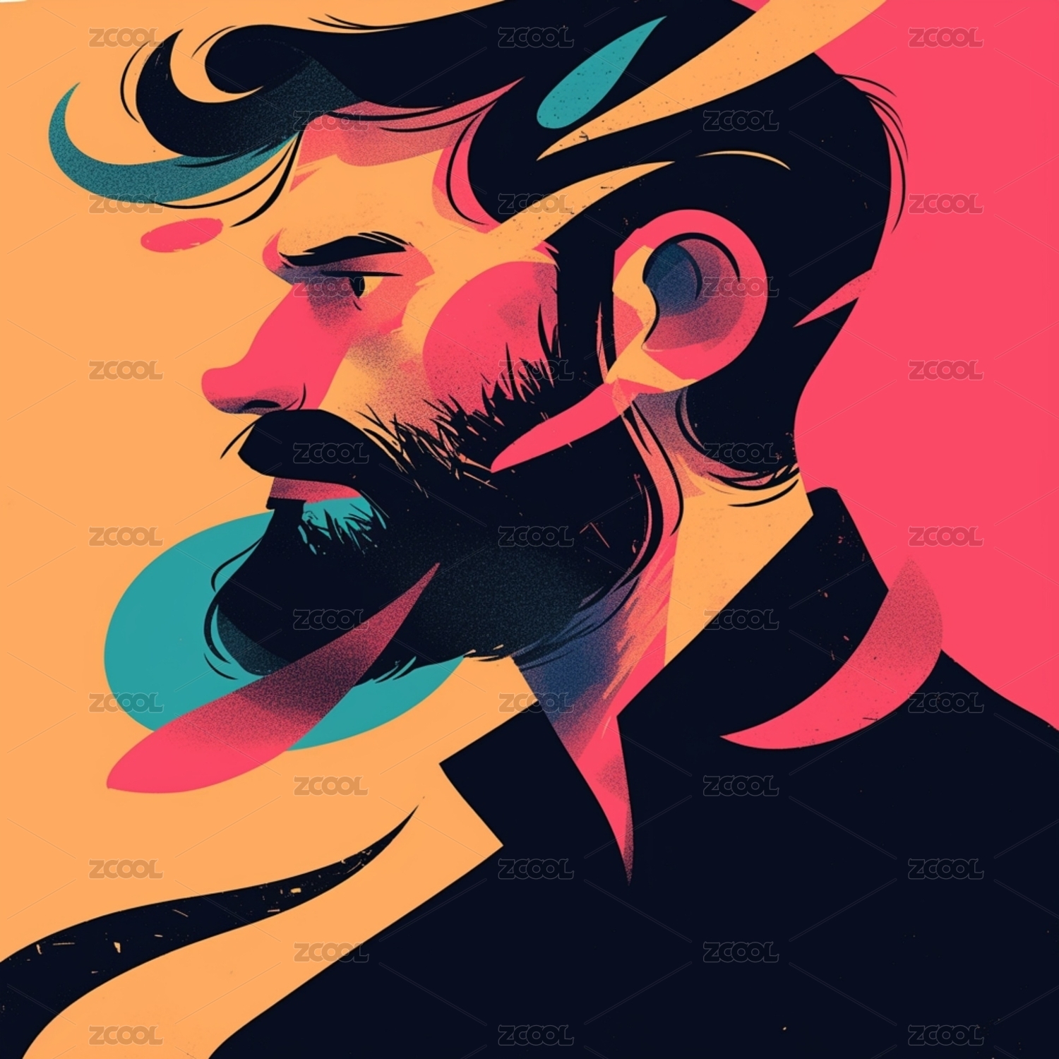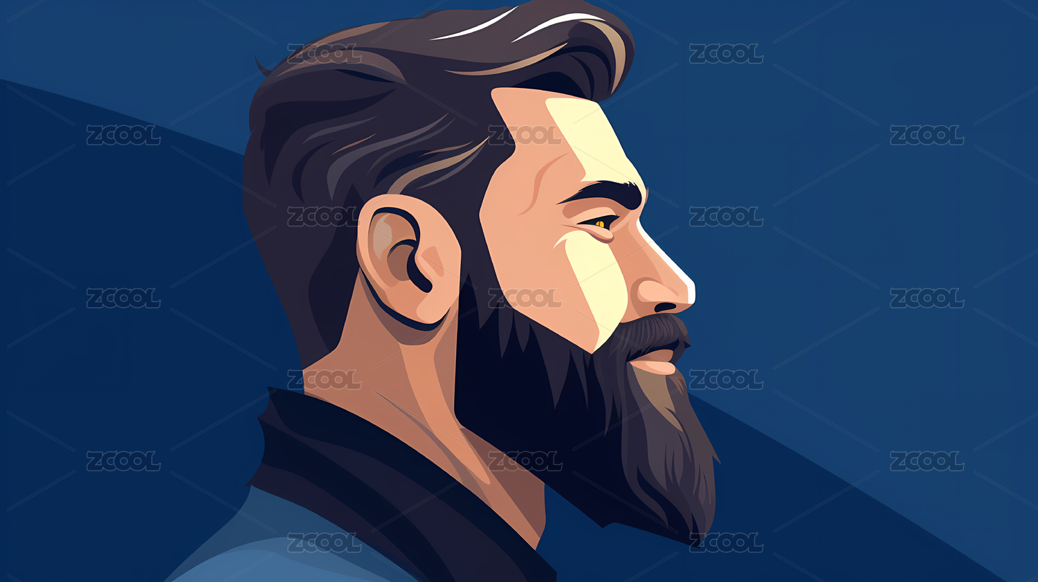 黑色男士时尚肖像大头照矢量扁平化设计背景
