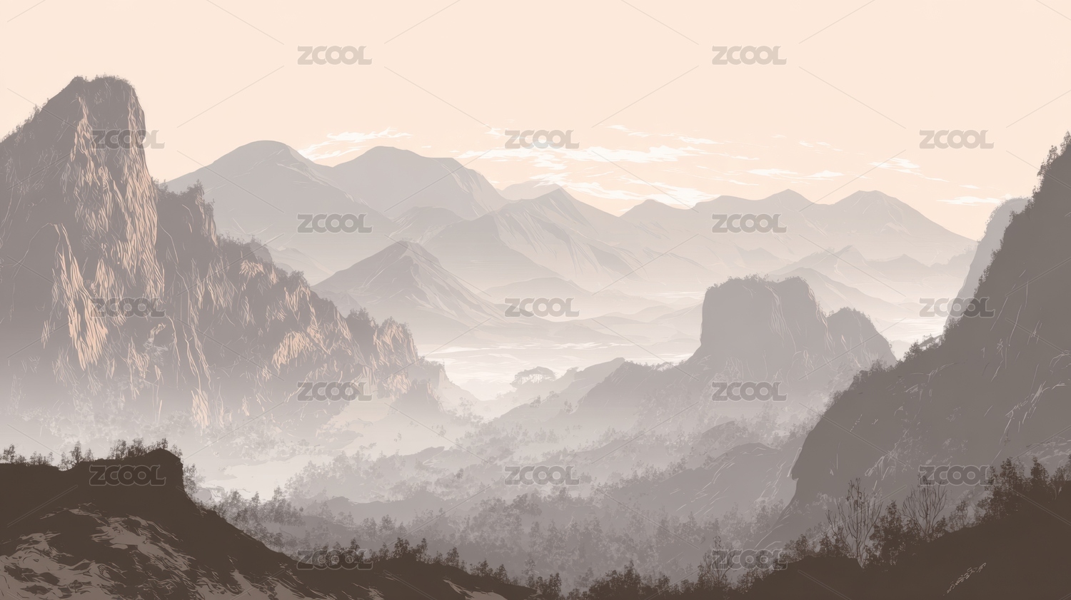 插画,背景,海报,峡谷,森林,远山,天空,太阳,阳光,小鸟
