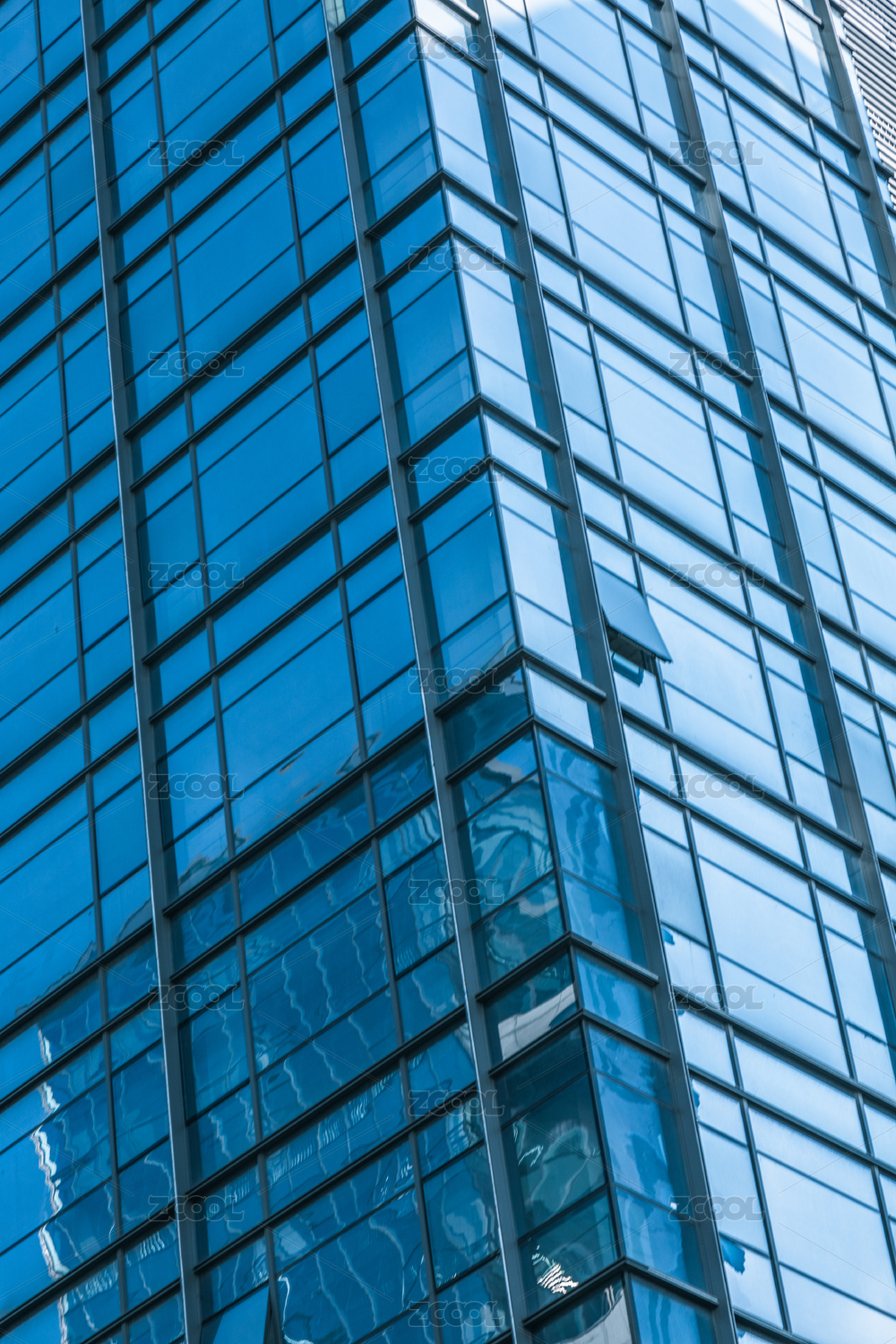特写玻璃建筑立面在上海,china.blue色调图像。