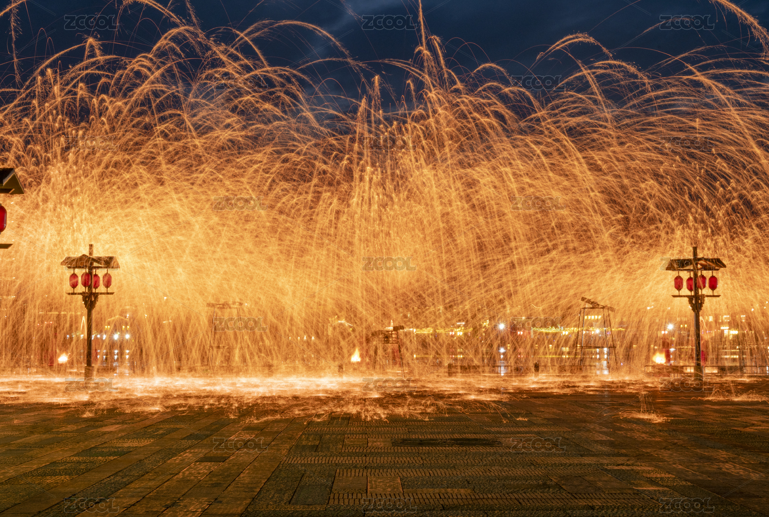 旅游,户外,水,夜晚,照亮,2023年,打铁花,传统,文化,庆祝