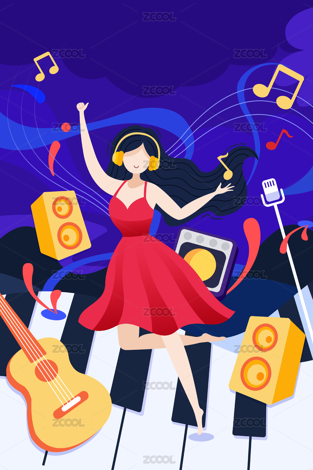 女孩和音乐狂欢