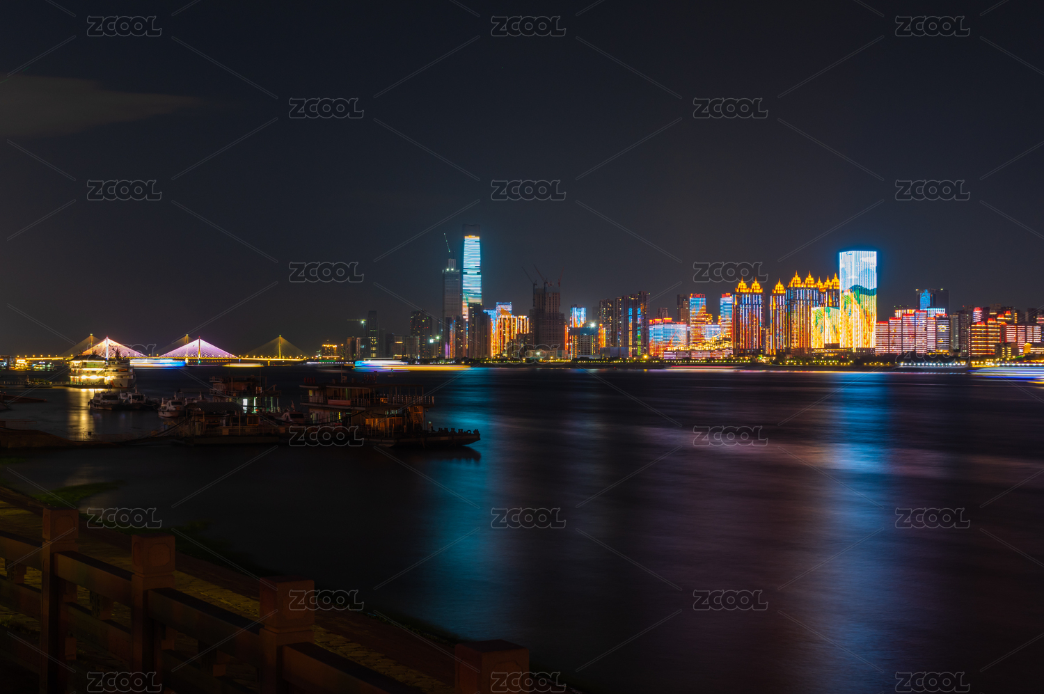 中国江西省南昌市赣江上的大桥和沿岸建筑