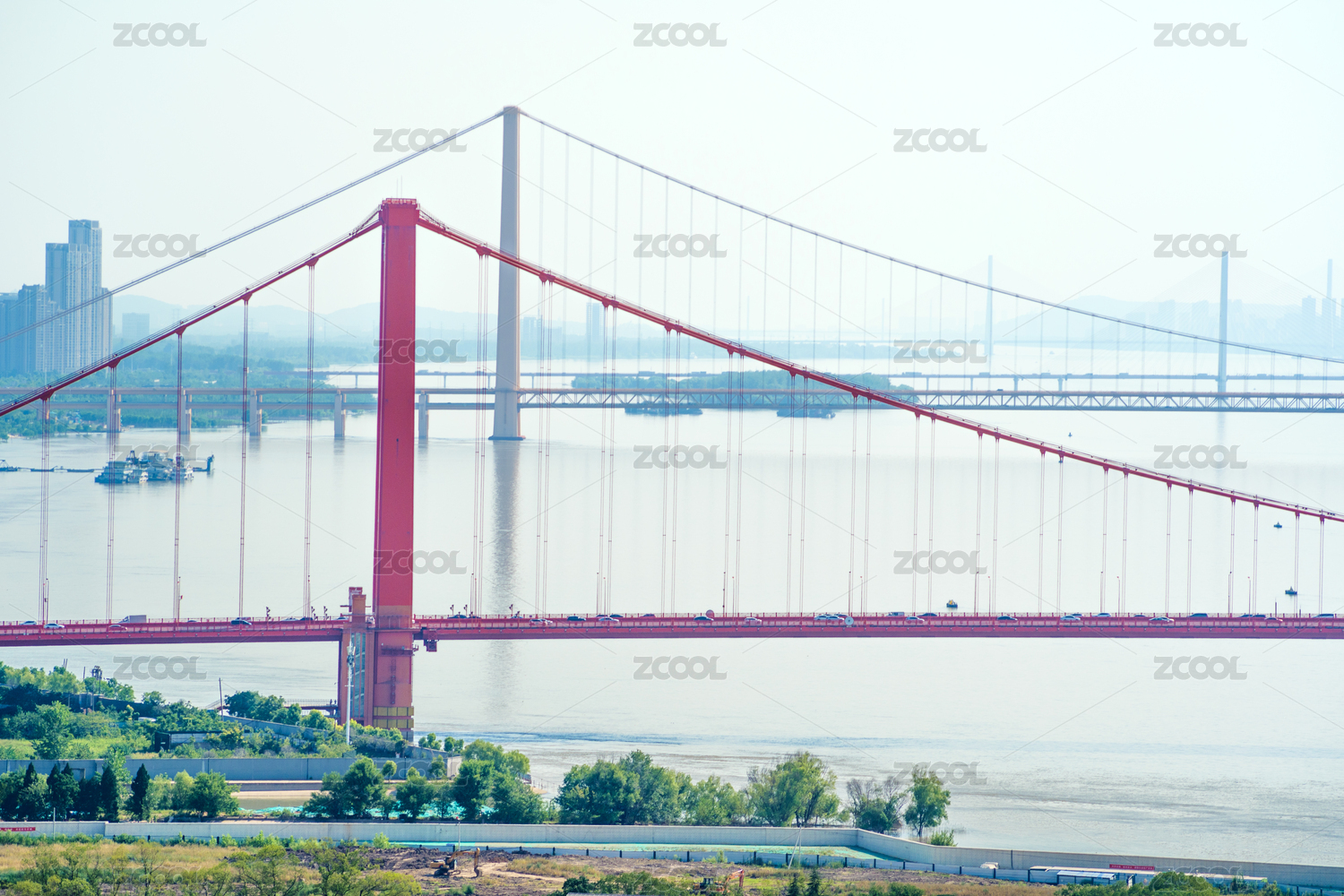 湖北武汉鹦鹉洲长江大桥夏日风光