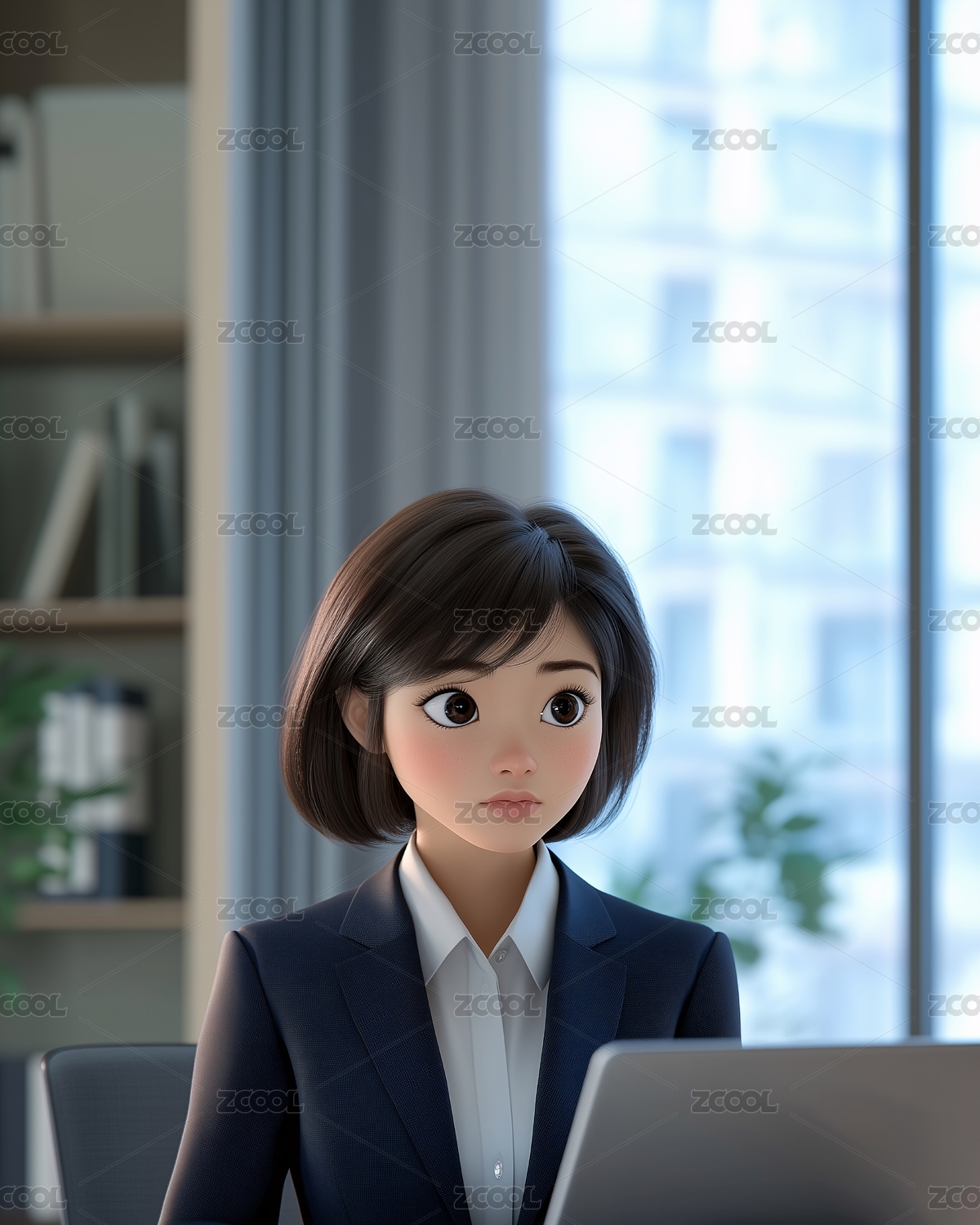 职业,商务,女士,短发,西装,上半身,文件,3D,卡通,立体