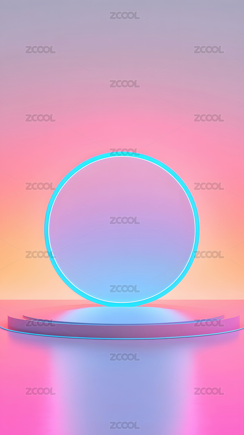 蓝粉色渐变背景中的3D圆形展台