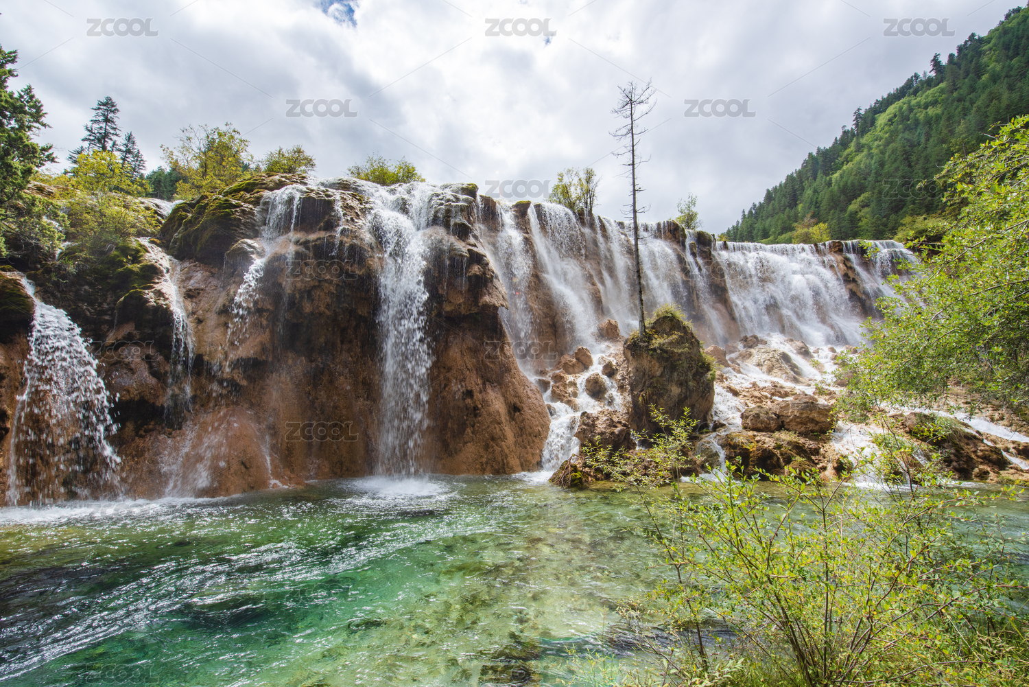 冬天中国四川阿坝九寨沟双龙海瀑布自然风光