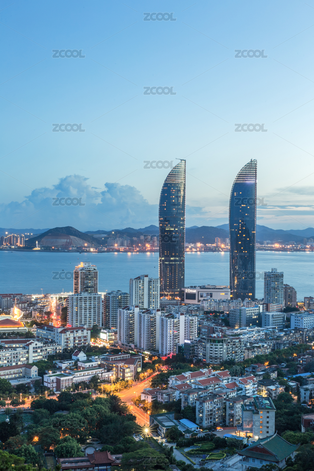 城市风光,城市夜景,日落,厦门,厦门地标,厦门夜景,风景,海边城市夜景,蓝色,明亮