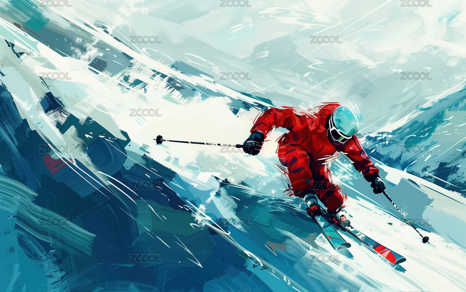 立冬节气冬天滑雪运动假期娱乐冒险活动插画