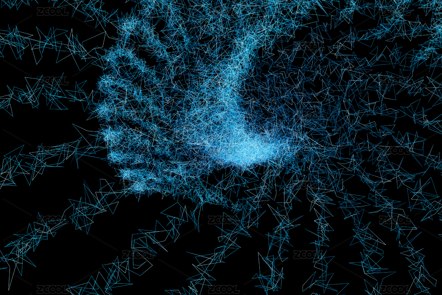 白色粒子延伸汇聚远方消失在蓝色背景上