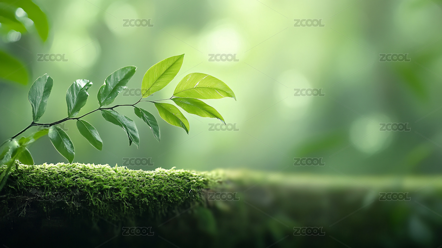 嫩芽与青苔覆盖的树枝
