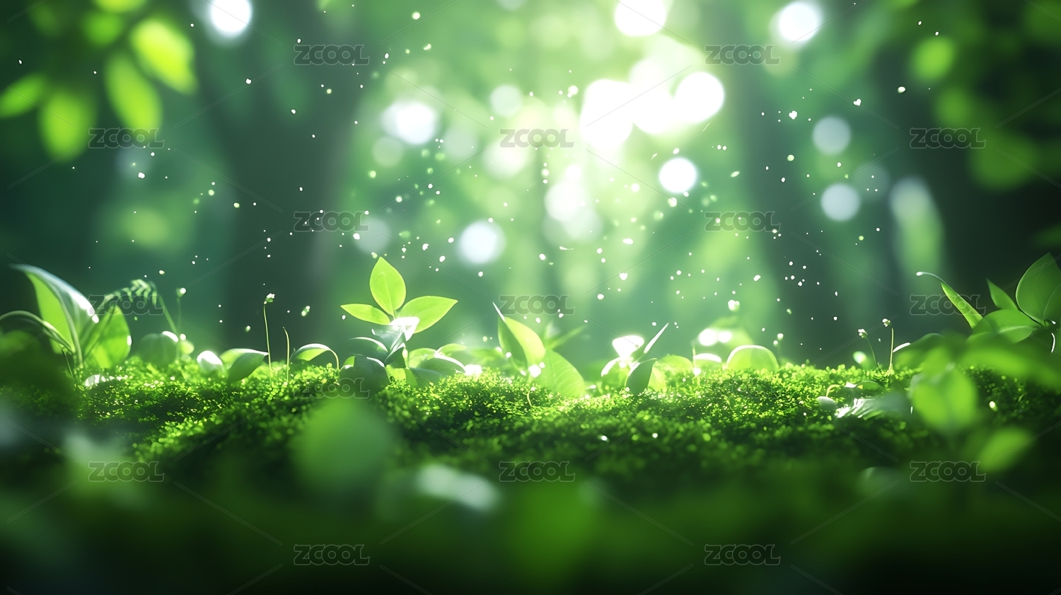 森林中晨曦照耀的嫩绿植株