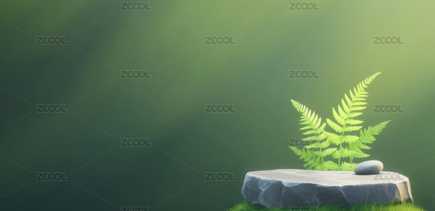 绿色蕨类植物在石台上