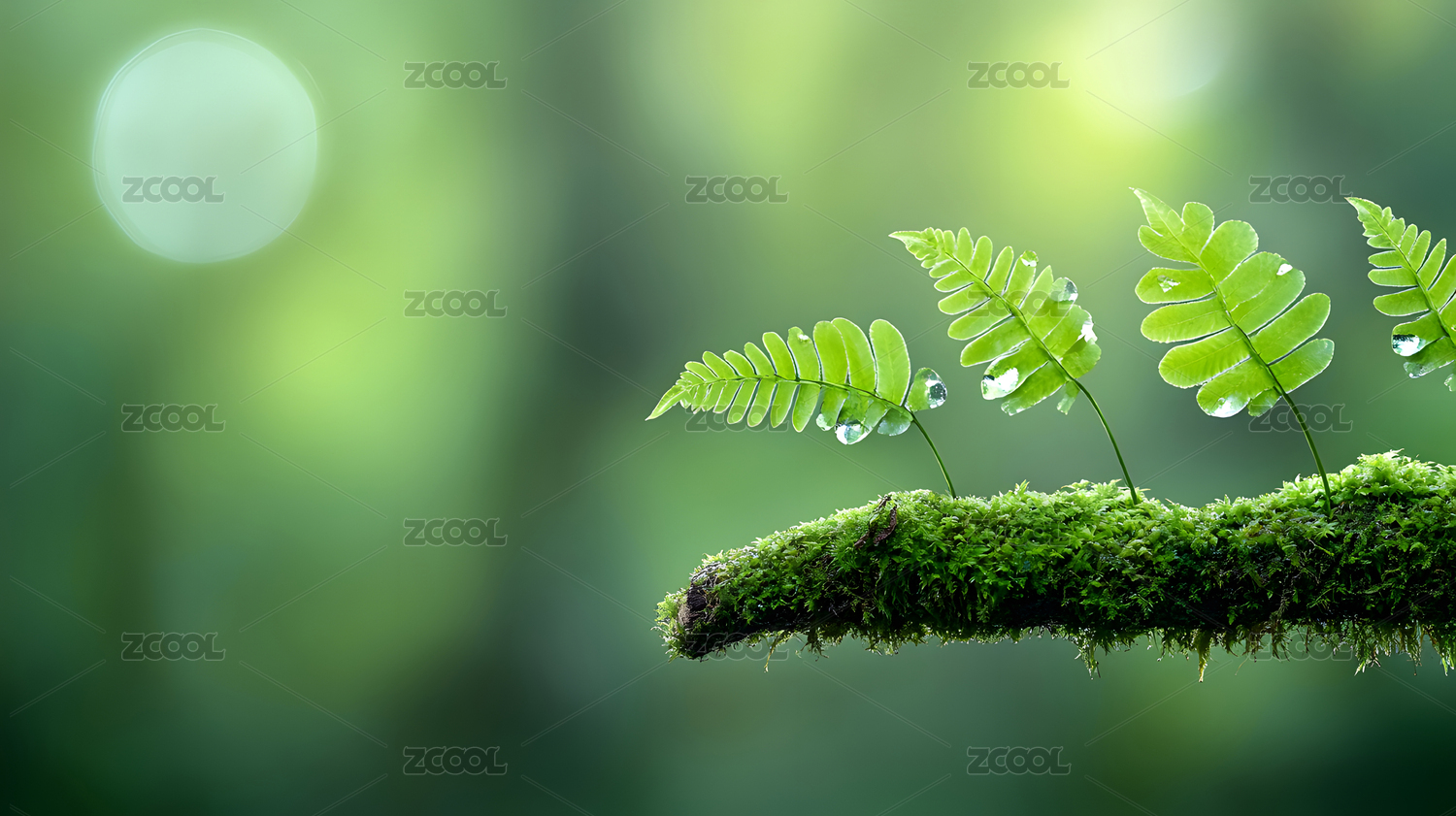 青苔枝上蕨叶带露映绿意