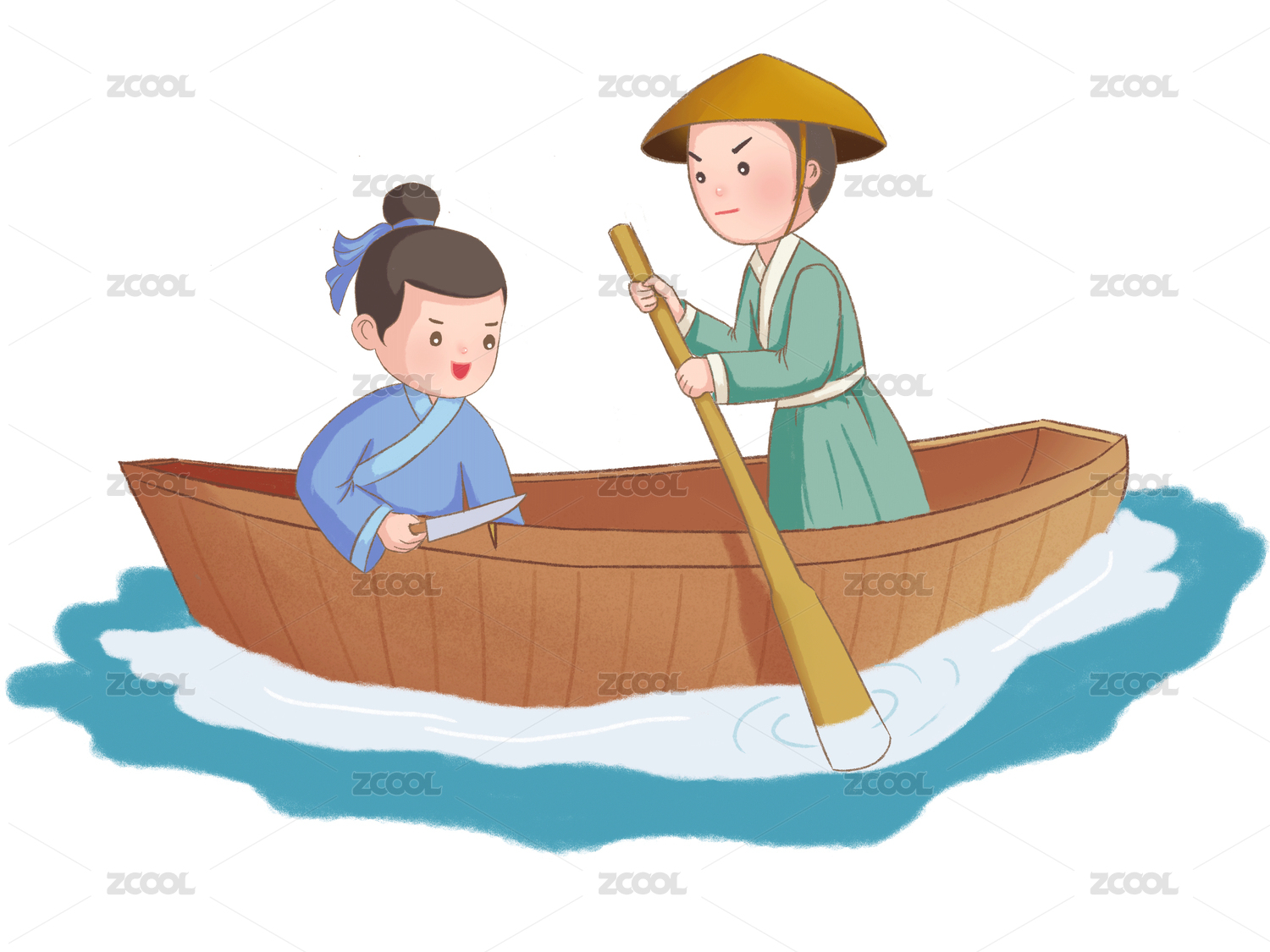 成语故事刻舟求剑古装人物划船书生拿刀刻