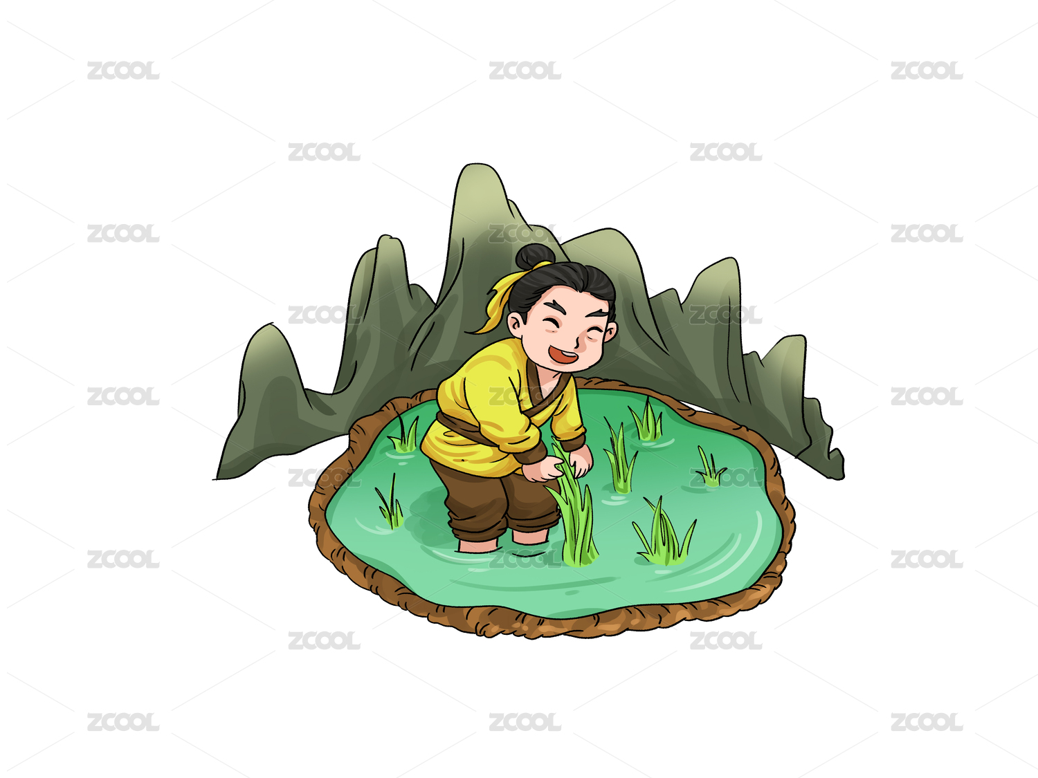 成语拔苗助长古装衣服稻田里拔苗 拷贝