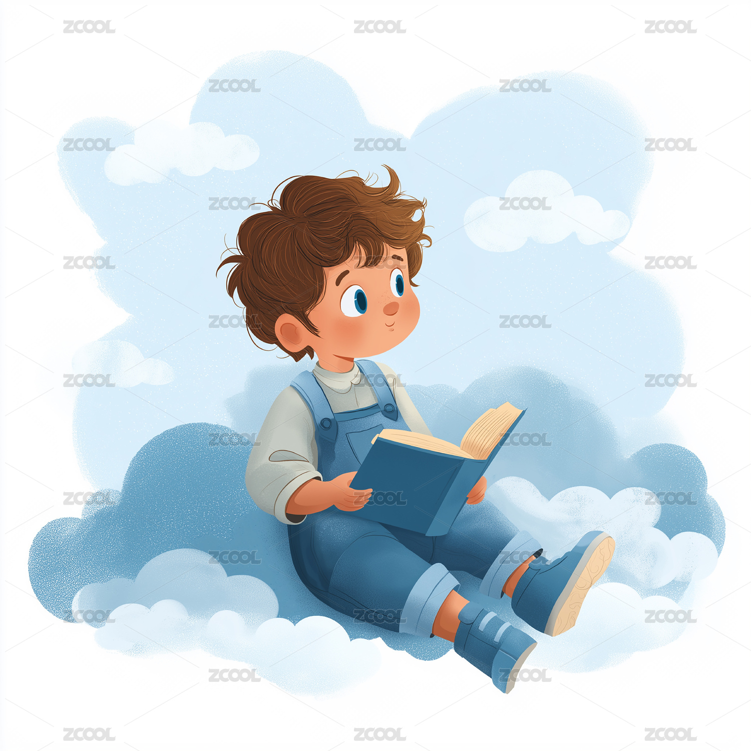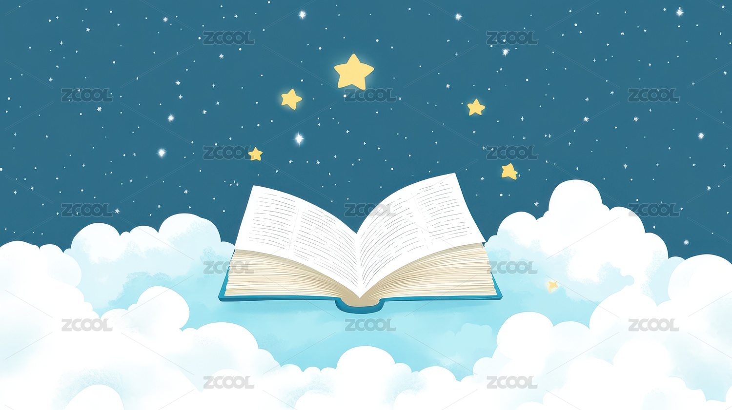 坐在云上竖起大拇指的天使宝宝和星空背景