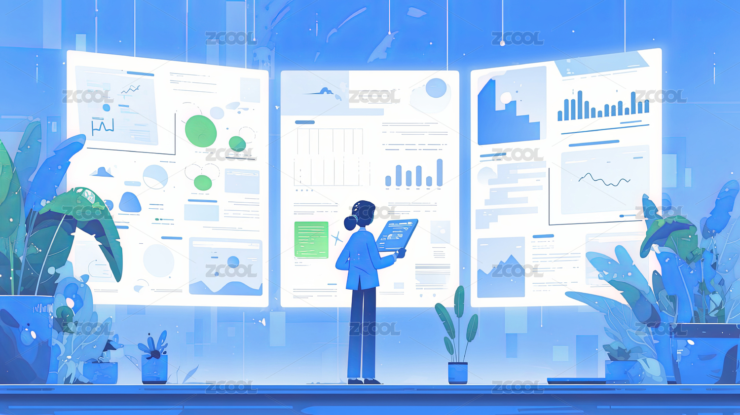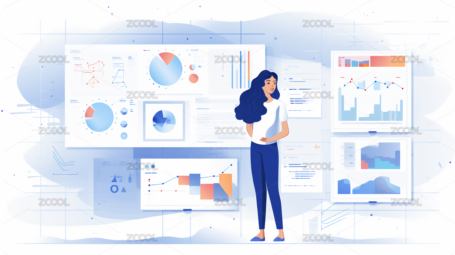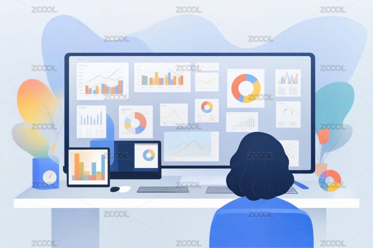 数据分析办公插画