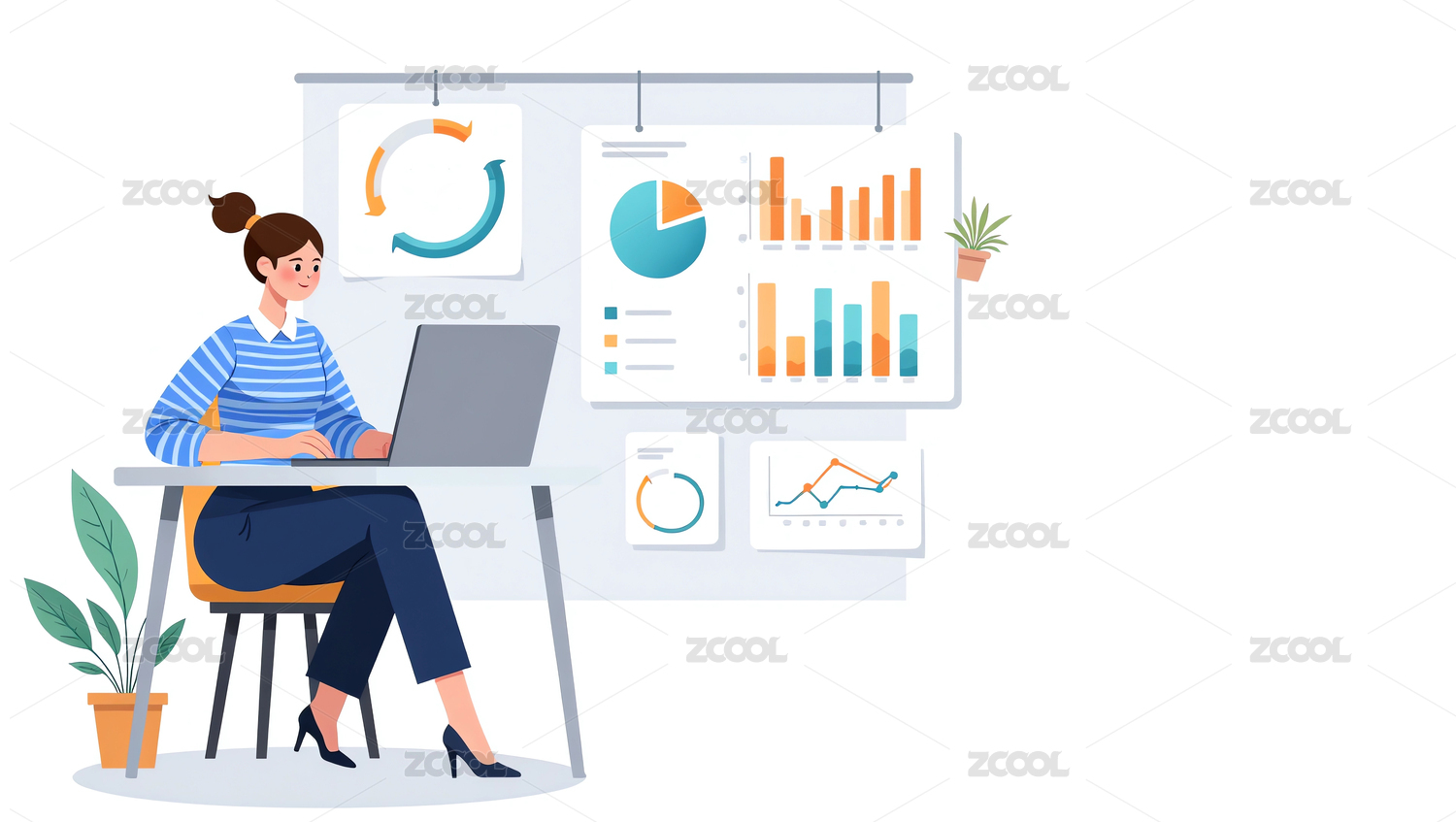 商务商业办公图表扁平化插画