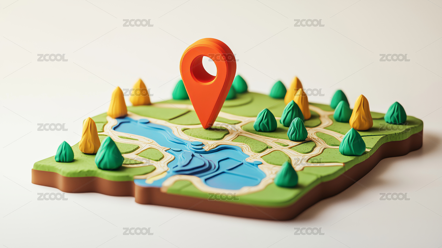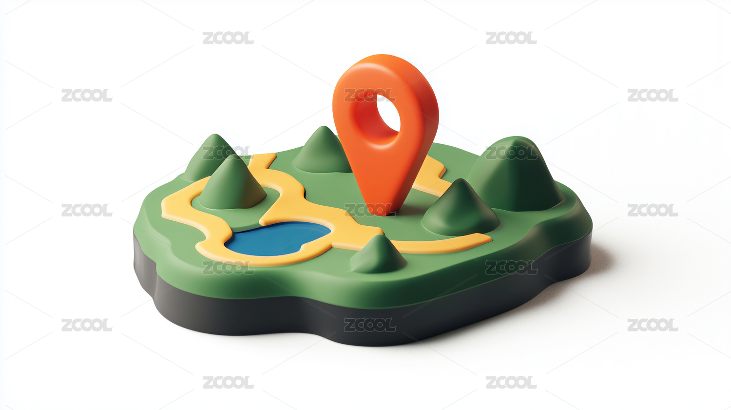 3D卡通地点导航概念场景图标