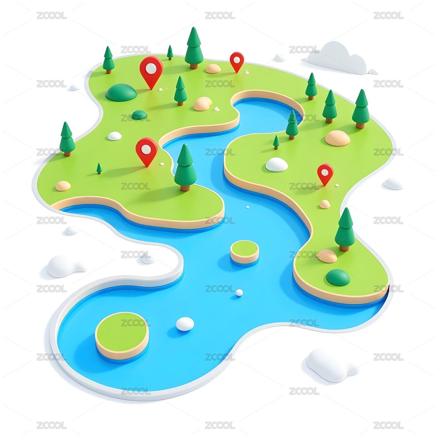 卡通风格小岛地图图标