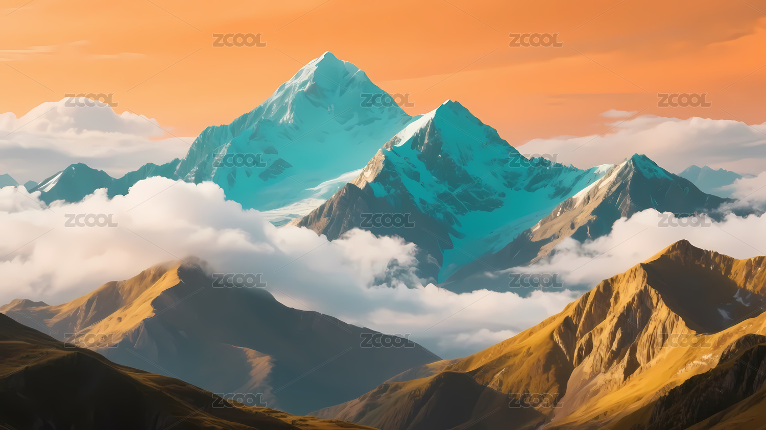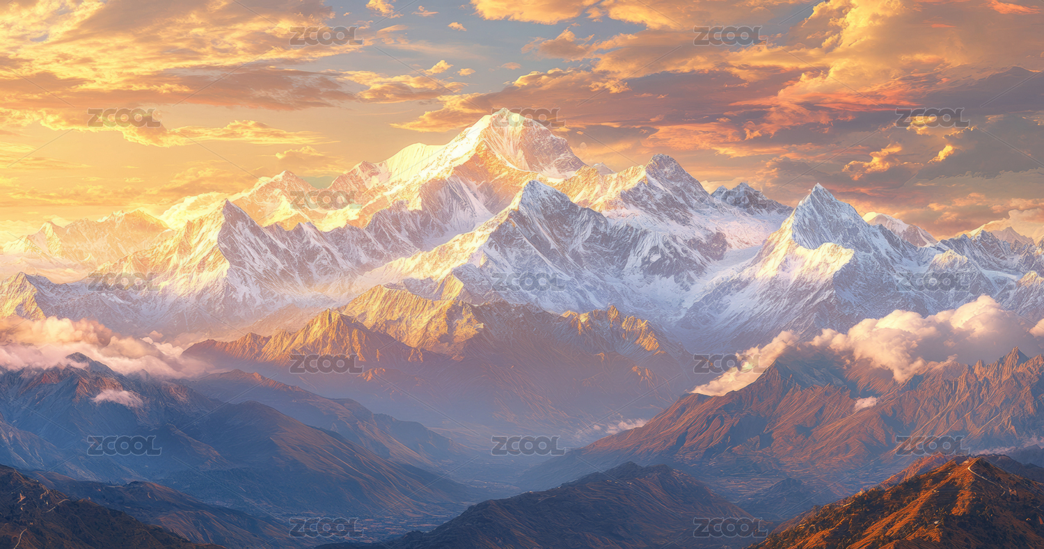 3D,场景,日照,金色,高山,山脉,阳光,大自然,天空,云彩