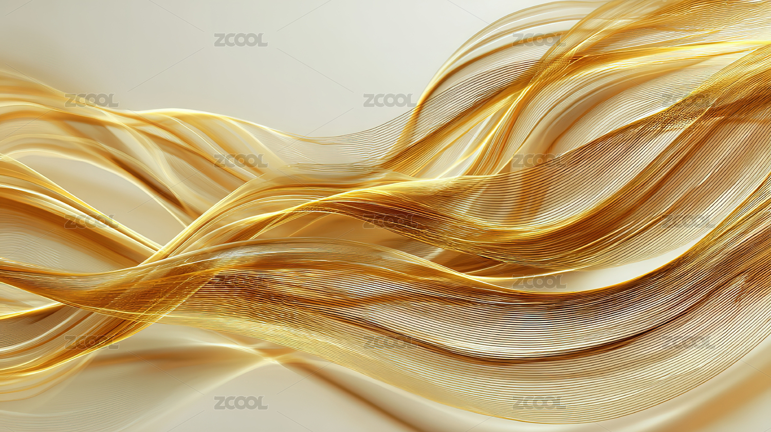 金色线条与白色波浪的抽象背景