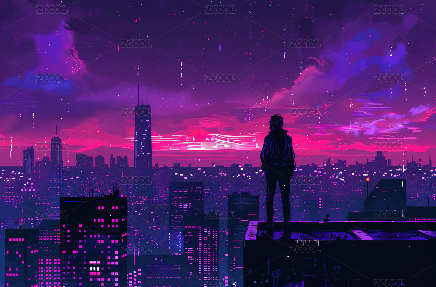 概念,城市,物联网,蓝色,光影,全息,夜晚,建筑,天空,天际线