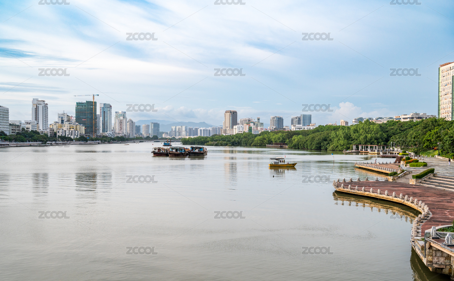 天空,桥,建筑,水,河流,南宁,植物,绿色,夏天,风光