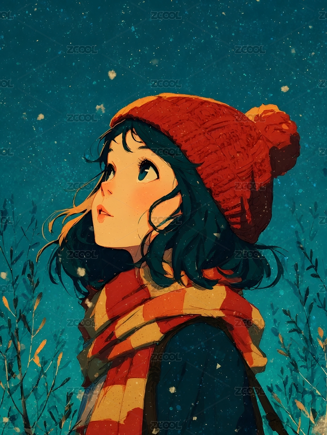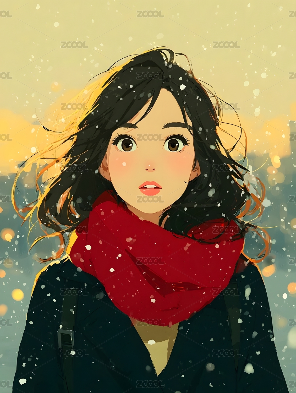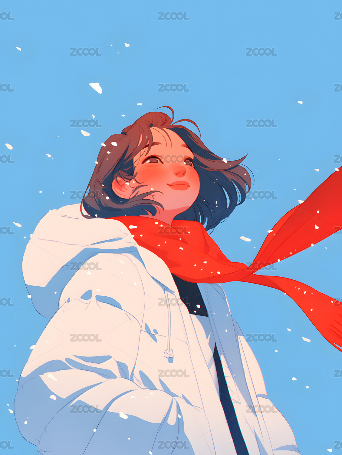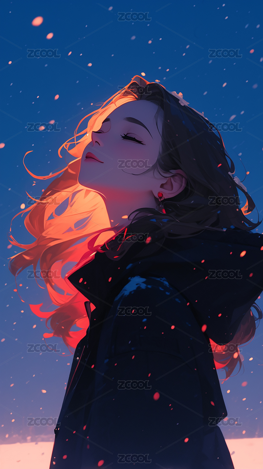雪地,女孩,女生,侧面视角,竖构图,大衣,天空,冷