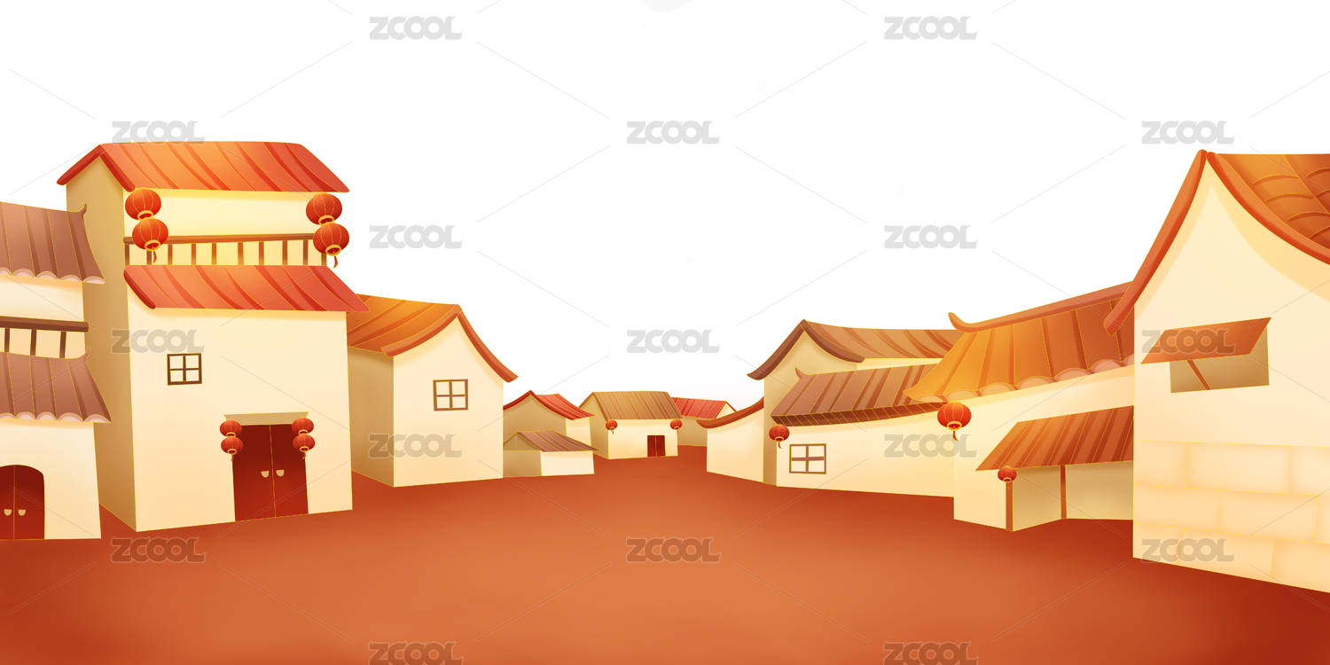 新年村庄热闹场景插画