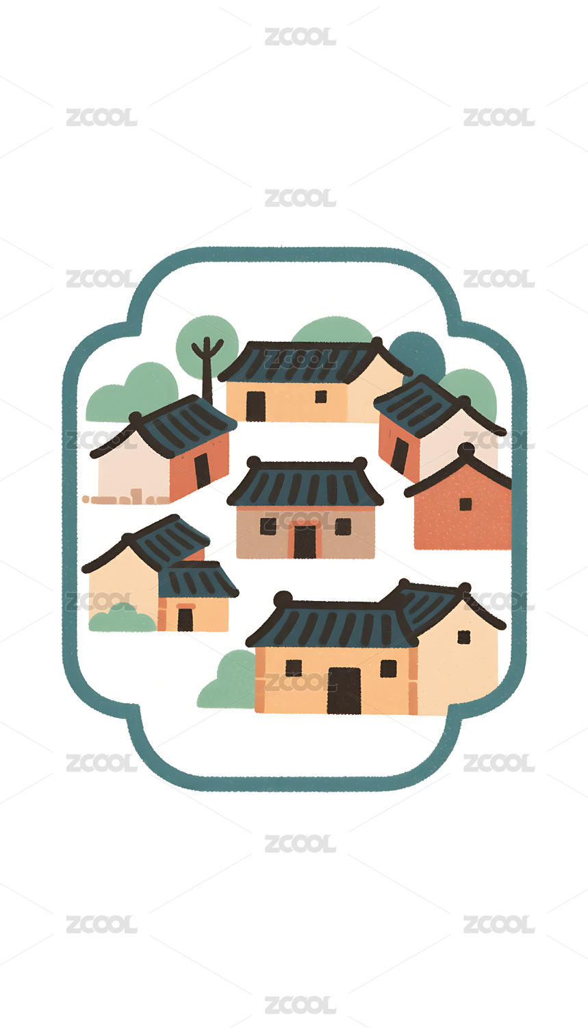 国潮风格卡通卡通古建筑群插画