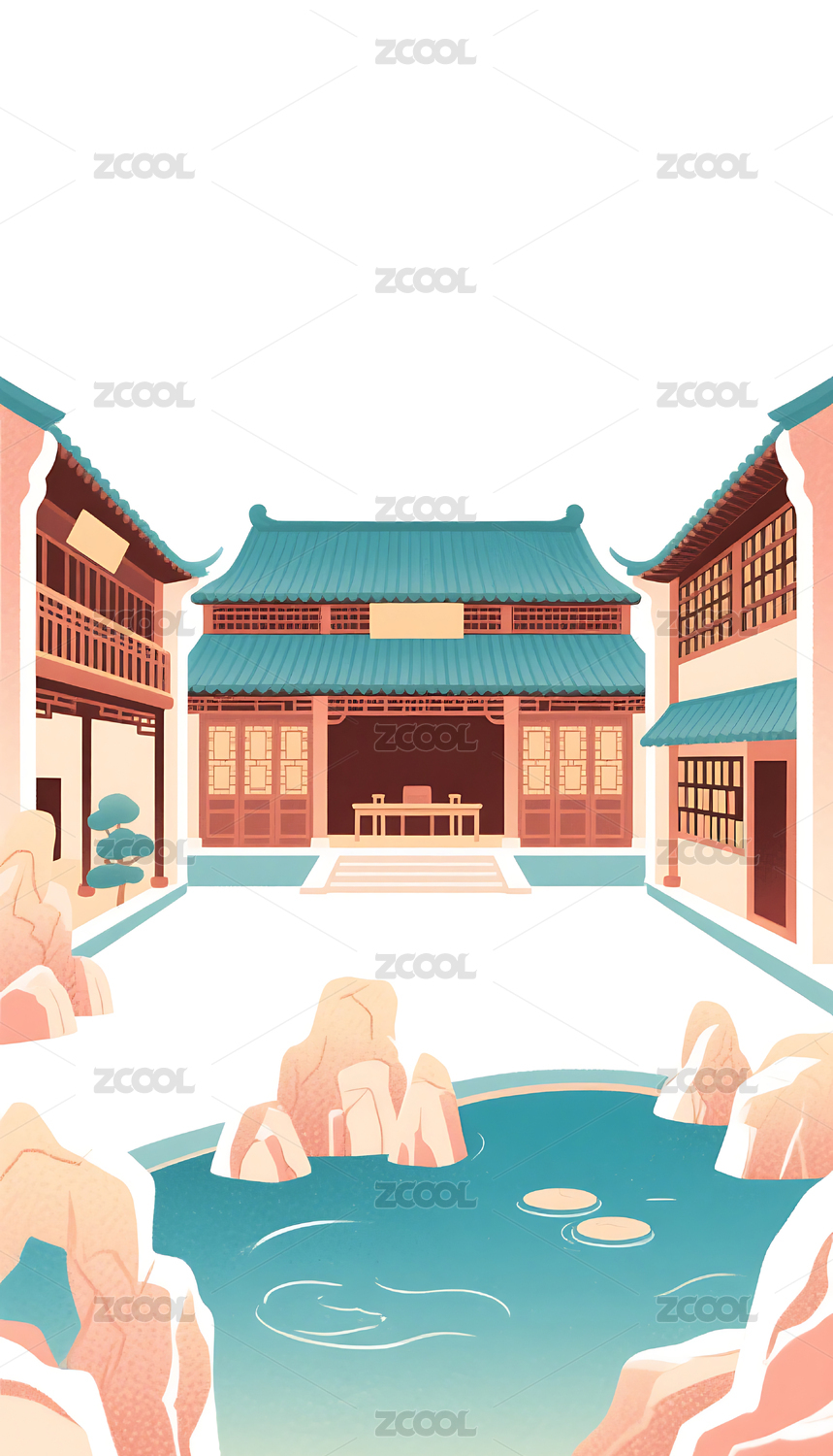 中式传统国潮风格古建筑插画素材