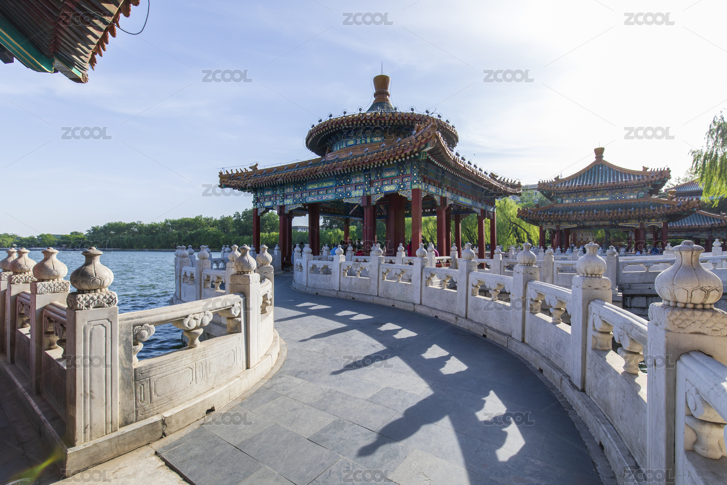 清晨阳光下的北海公园五龙亭