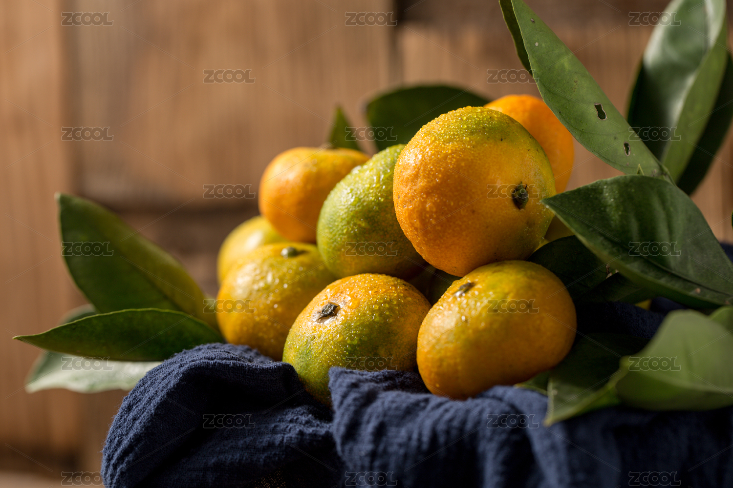 木纹背景上摆放的新鲜砂糖橘