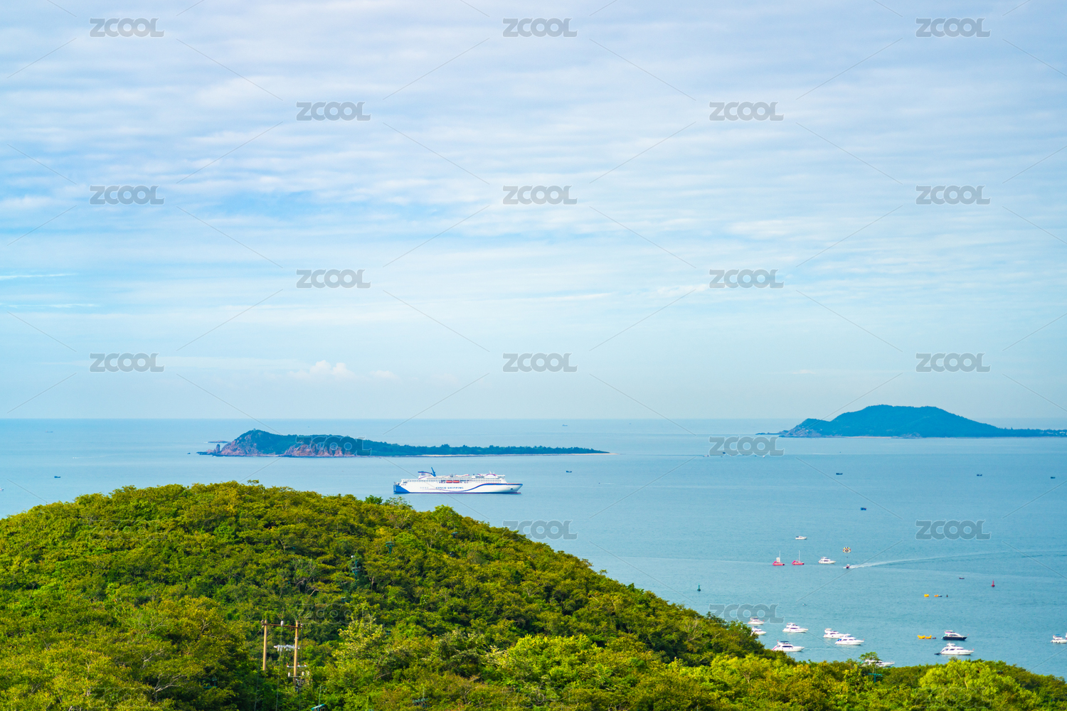 浙江省温州市洞头区-蓝天映衬下的海湾海岛